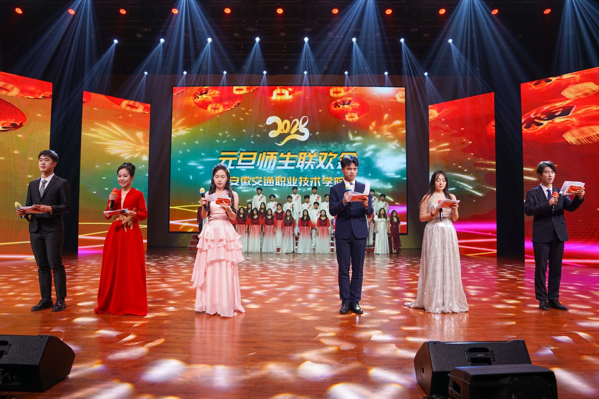 整場聯(lián)歡會(huì)在院黨委指導(dǎo)和工會(huì)、學(xué)生處(團(tuán)委)組織下,由各系和大學(xué)生藝術(shù)團(tuán)、學(xué)院廣播臺(tái)等選送的節(jié)目合作而成,充分展示了各系、各學(xué)生團(tuán)體的風(fēng)采,也體現(xiàn)了交院人的團(tuán)結(jié)協(xié)作精神。隨著2025年元旦師生聯(lián)歡會(huì)緩緩落下帷幕,整個(gè)校園仿佛被一股溫暖而充滿希望的力量所充盈。在璀璨的燈光下、歡快的旋律中,師生們不僅共同回望了過去一年里風(fēng)雨兼程的奮斗歷程,更攜手展望了新的一年里學(xué)院發(fā)展的美好藍(lán)圖。那份屬于交院人的團(tuán)結(jié)、進(jìn)取與溫情,將如同璀璨星辰,照亮我們前行的道路。夢想與希望的種子已深深植根于每位師生的心田,靜待春暖花開,綻放屬于安徽交院的璀璨光芒!(圖片:余凱旸、龔可可、劉繼蕓、彭介如、冉凡齊、李闖 文案:王家樂、許曉涵)