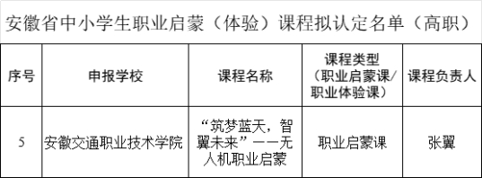 近日,安徽省2024年職業(yè)啟蒙教育系列項目評選結(jié)果公布。我院李志成老師負責(zé)的軌道交通職業(yè)體驗中心、章筱蕾老師牽頭的“筑夢藍天”職業(yè)啟蒙教師團隊、張翼老師講授的“筑夢藍天,智翼未來”——無人機職業(yè)啟蒙課程成功申報安徽省2024年職業(yè)啟蒙教育系列項目。