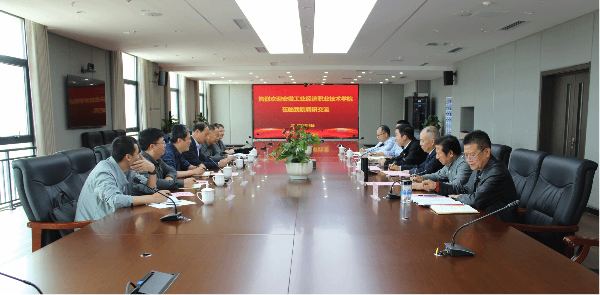 4月8日下午,安徽工業經濟職業技術學院黨委副書記、校長劉仁金一行人來我院開展調研交流,學院黨委副書記、院長孫曉雷等院領導及相關部門負責人接待陪同。