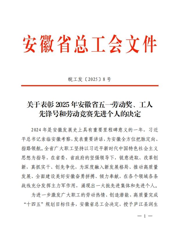 近日,安徽省總工會發布《關于表彰 2025 年安徽省五一勞動獎、工人先鋒號和勞動競賽先進個人的決定》,我院土木系副主任紀凱、城信系教師王怡榮獲安徽省五一勞動獎章。