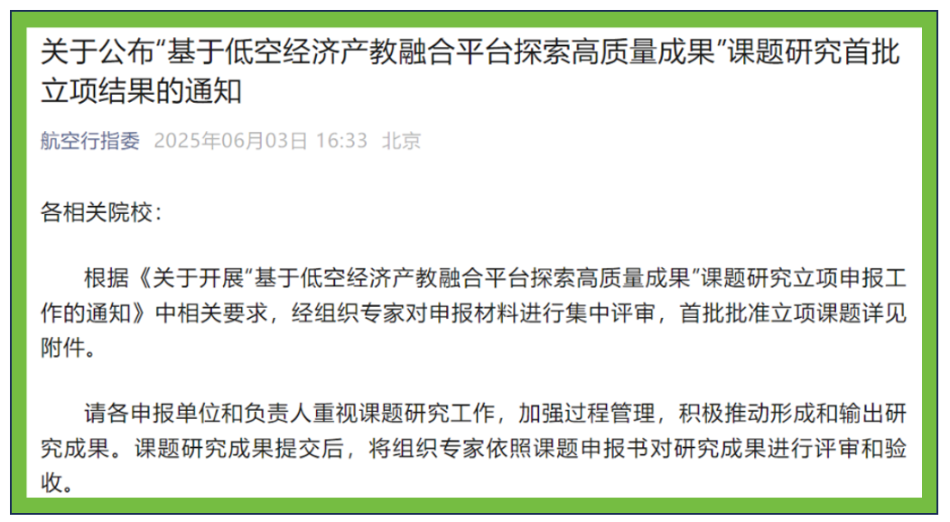 全國航空工業職業教育教學指導委員會(簡稱航空行指委)是經教育部批準設立的專業性教學指導機構,此次開展“基于低空經濟產教融合平臺探索高質量成果”課題研究是為配合學校產教融合高質量建設需求,服務和支撐各省市低空經濟相關產業建設。