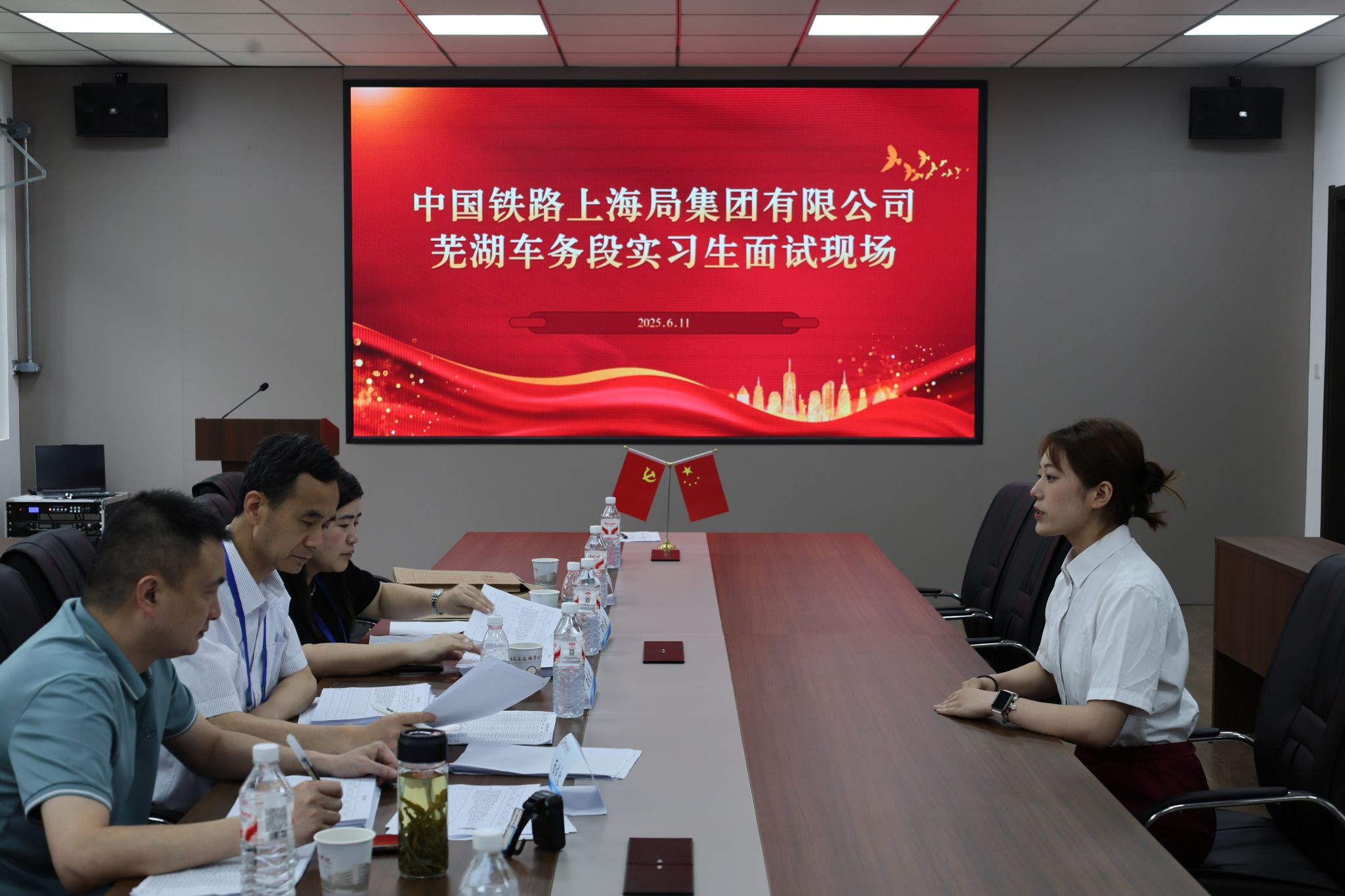 6月11日,中國(guó)鐵路上海局集團(tuán)有限公司蕪湖車務(wù)段勞人科科長(zhǎng)吳志祥、營(yíng)銷科科長(zhǎng)卞元章等一行8人赴我校開(kāi)展實(shí)習(xí)生專場(chǎng)招聘工作。本次招聘面向軌道交通學(xué)院2023級(jí)(2026屆)學(xué)生,通過(guò)面試等環(huán)節(jié)選拔車站客運(yùn)員崗位實(shí)習(xí)生。