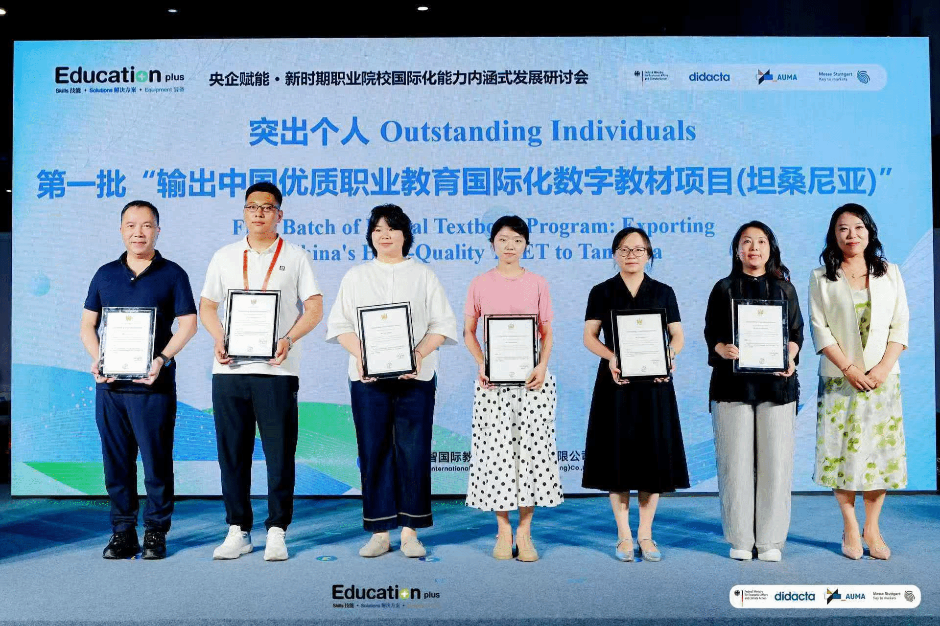 我校教師葉生應邀參加此次盛會,代表團隊登臺領取第一批“輸出中國優質職業教育國際化數字教材項目(坦桑尼亞)”立項單位獎牌,《橋涵工程試驗檢測技術》國際化教材編寫團隊教師王東、葉生被授予第一批“輸出中國優質職業教育國際化數字教材項目(坦桑尼亞)”突出個人。這些榮譽取得彰顯了我校在職業教育國際化領域所取得的成績,也為學校進一步推進職教出海戰略提供了堅實支撐。