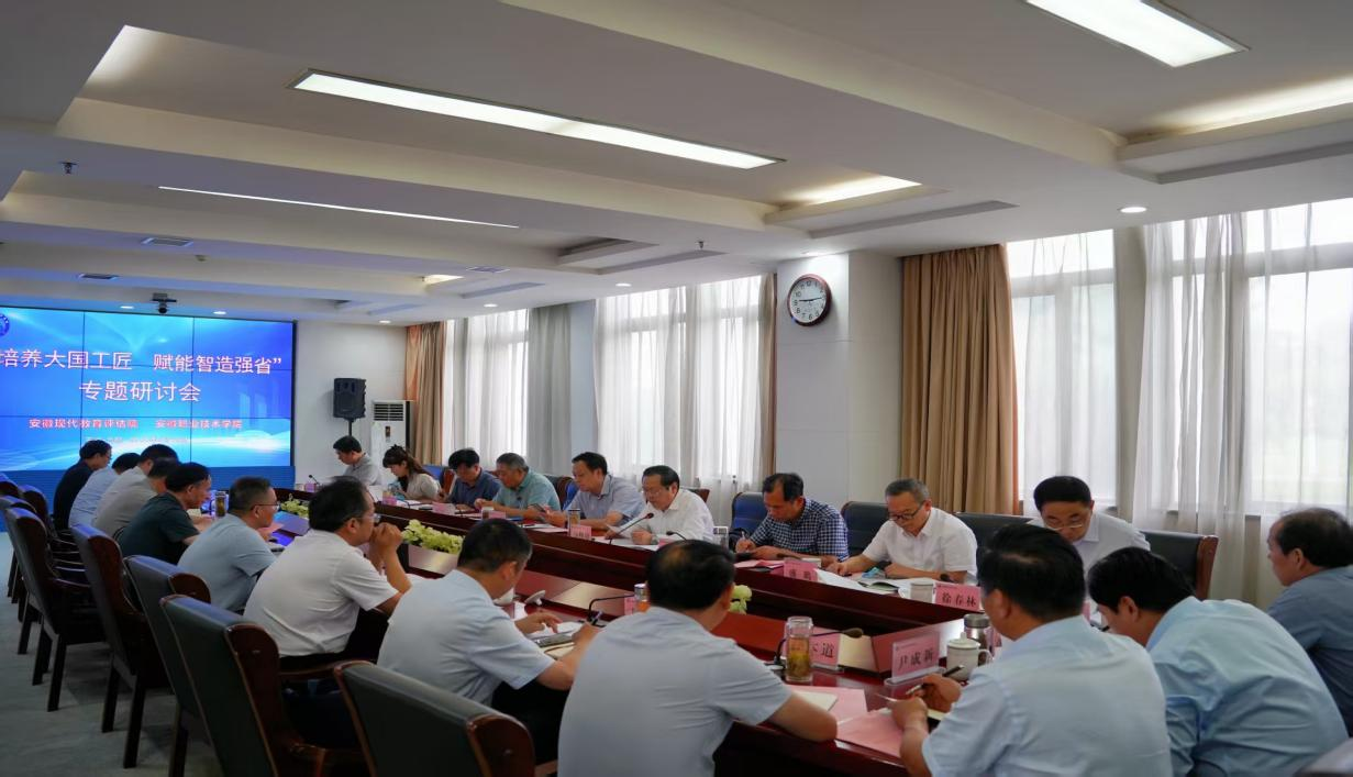 6月10日,由安徽現代教育評估院聯合安徽職業技術學院主辦的“培養大國工匠 賦能智造強省”職教專題研討會在安徽大學召開。會議由安徽現代教育評估院戰略咨詢委員會主任委員、安徽大學黨委原書記蔡敬民教授主持,我校黨委副書記、校長孫曉雷參加本次研討會并作題為“數字賦能驅動三教轉型,協同創新培育技能菁英”的主旨報告。
