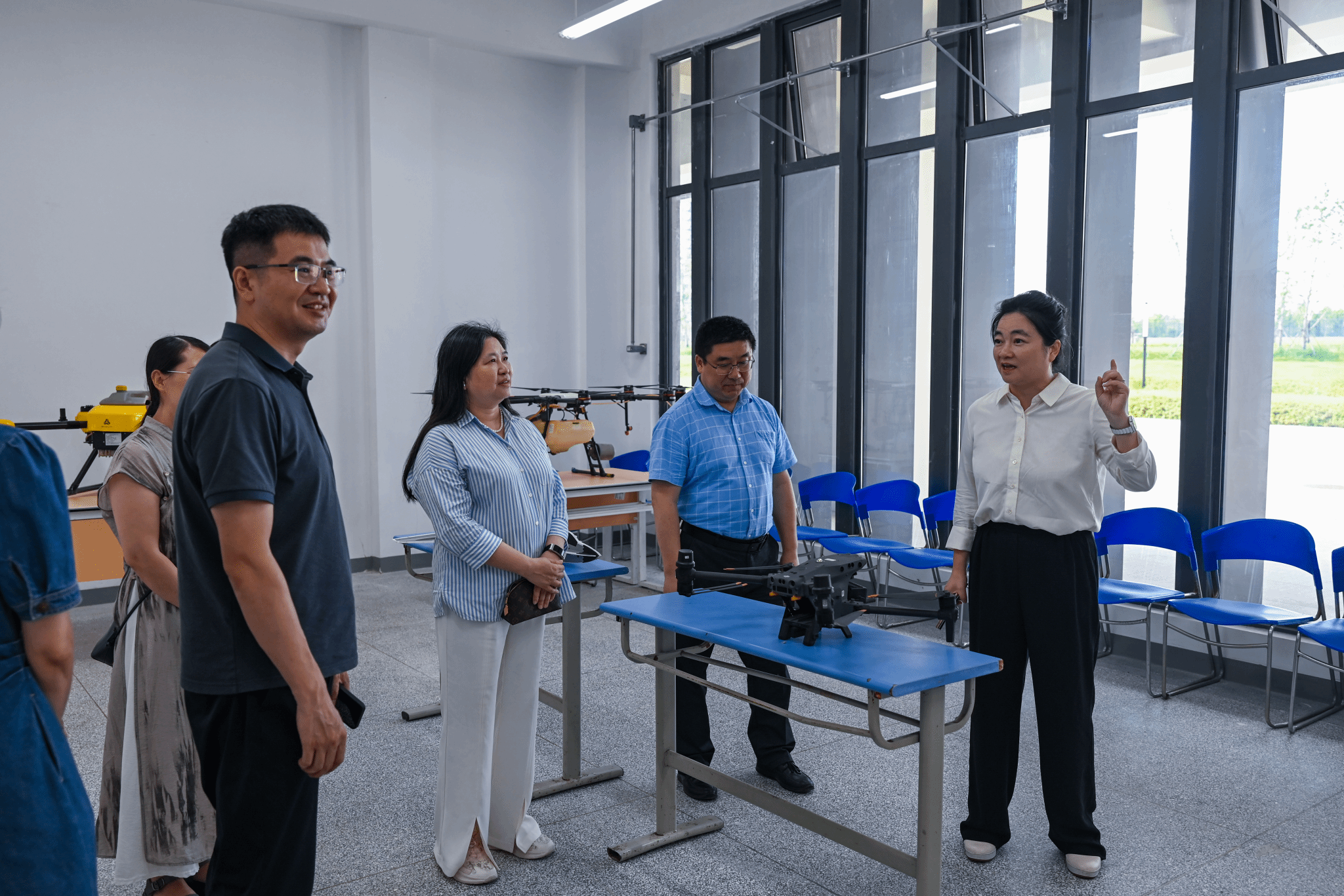 省教育廳領導和專家對學校進行現場考察。參觀了智慧大廳、航空與低空經濟學院、軌道交通學院、汽車工程學院等教學場所,深入了解學校的教學環境與專業建設情況。此外,還考察了八珍園食堂和學生宿舍。