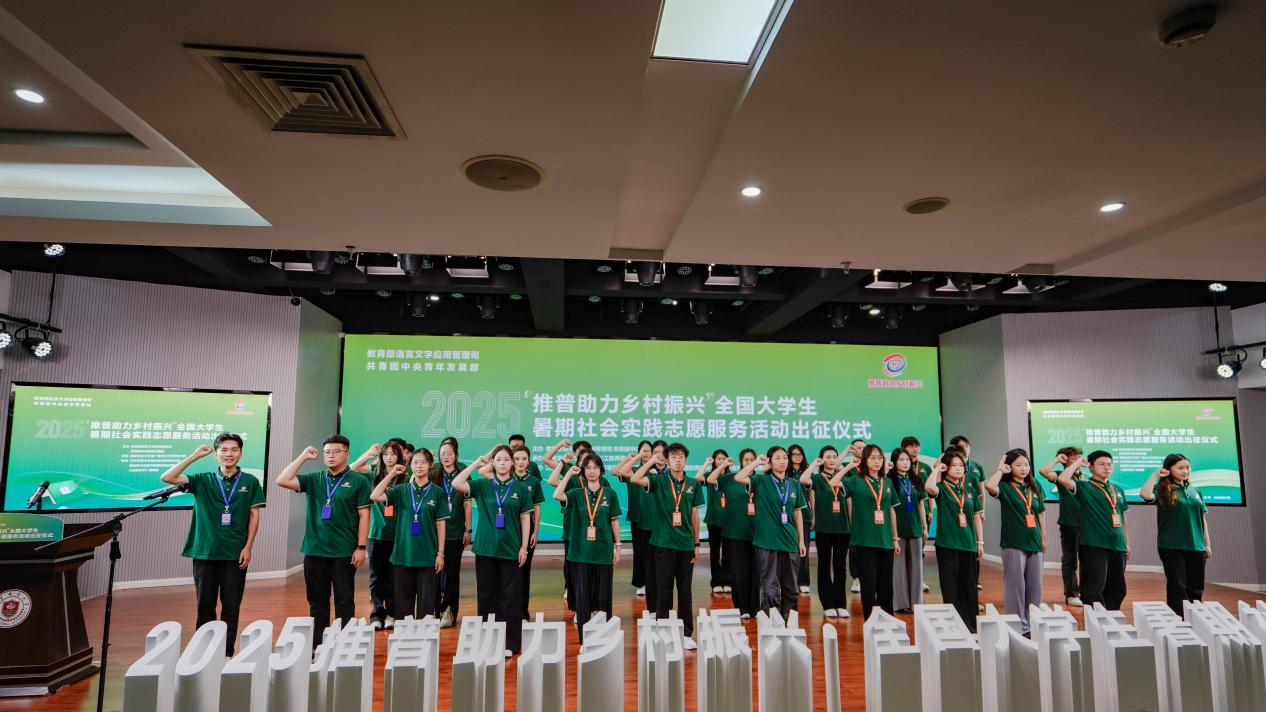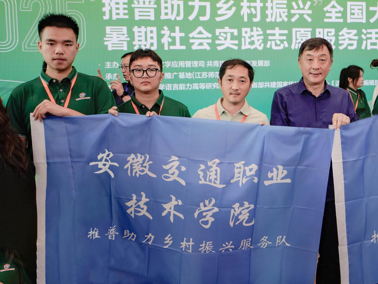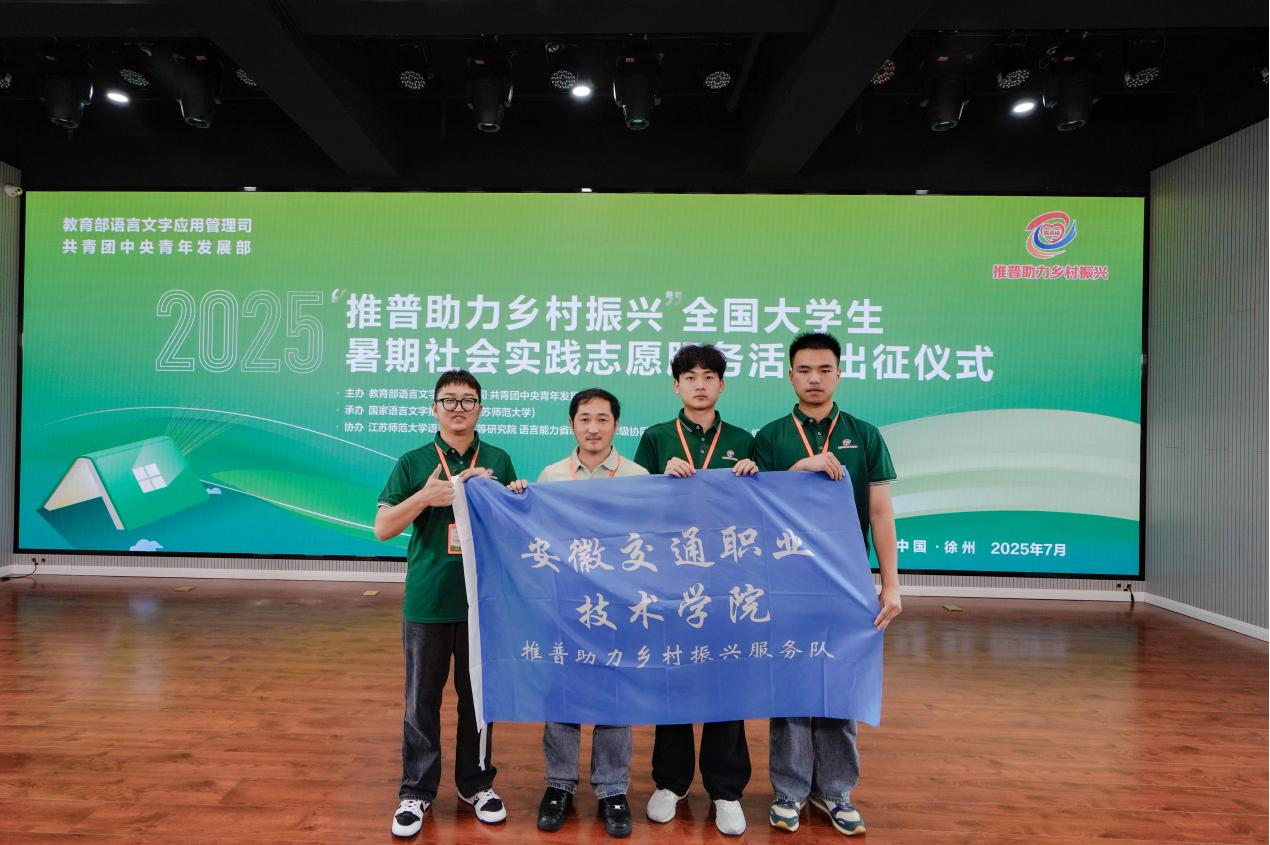 為深入貫徹黨的二十大和二十屆二中、三中全會(huì)精神,落實(shí)習(xí)近平總書記關(guān)于教育及語言文字的重要論述,落實(shí)《教育強(qiáng)國建設(shè)規(guī)劃綱要(2024—2035年)》,加大國家通用語言文字推廣力度,促進(jìn)鑄牢中華民族共同體意識(shí),引導(dǎo)青年學(xué)生為中國式現(xiàn)代化建設(shè)貢獻(xiàn)青春力量,7月10日,由教育部語言文字應(yīng)用管理司、共青團(tuán)中央青年發(fā)展部聯(lián)合開展的“推普助力鄉(xiāng)村振興”全國大學(xué)生暑期社會(huì)實(shí)踐志愿服務(wù)活動(dòng)出征儀式在江蘇師范大學(xué)隆重舉行。我校由安徽交院廣播組成的團(tuán)隊(duì)成功入選2025年“推普助力鄉(xiāng)村振興”重點(diǎn)團(tuán)隊(duì)并在出征現(xiàn)場接受授旗!