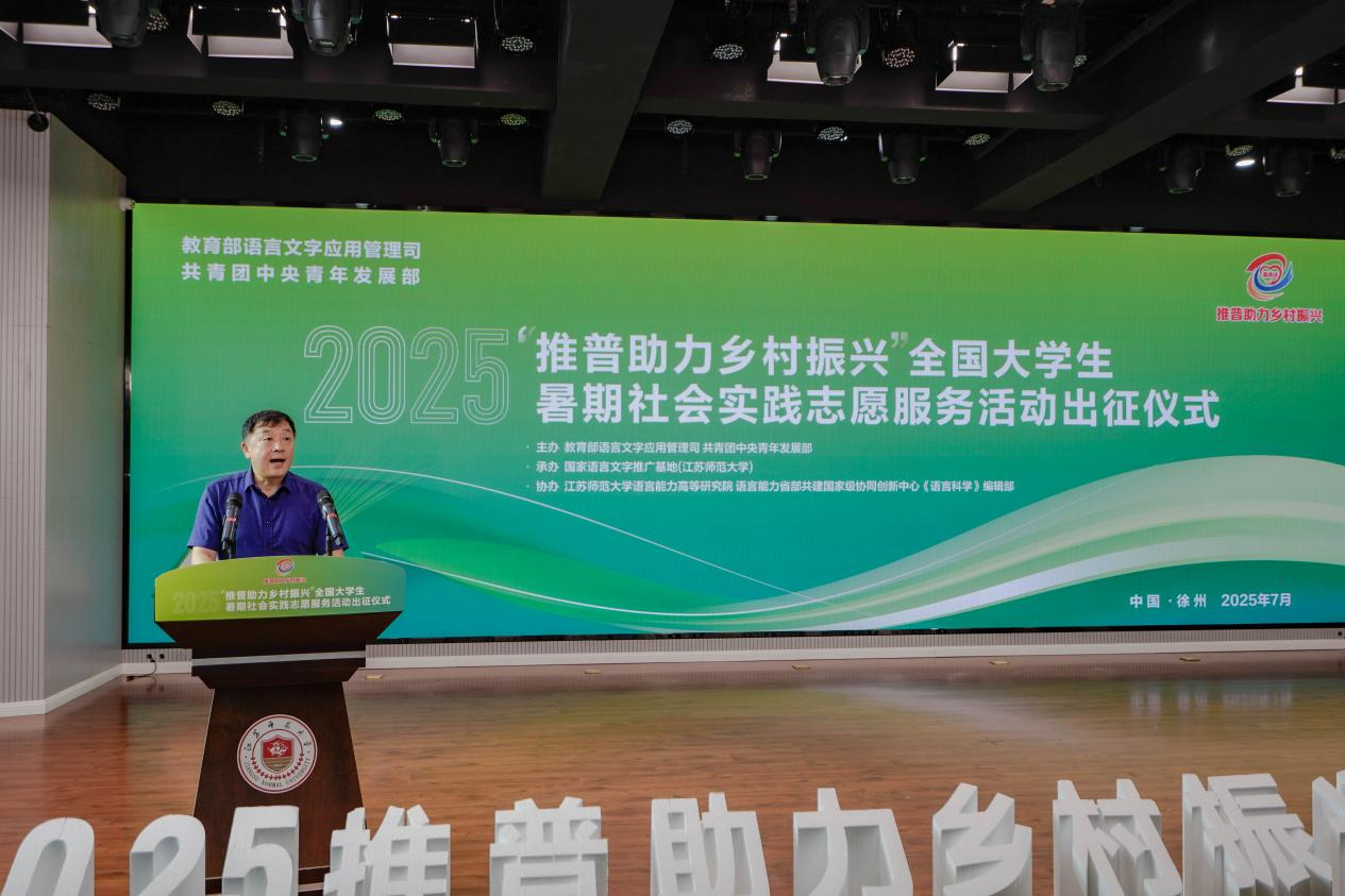 儀式伊始,江蘇師范大學(xué)校長杜增吉教授致歡迎辭,對參與活動(dòng)的師生表示熱烈歡迎,強(qiáng)調(diào)推普助力鄉(xiāng)村振興的重要意義,寄語青年學(xué)子以實(shí)踐踐行使命,為語言文字事業(yè)與鄉(xiāng)村發(fā)展注入活力。