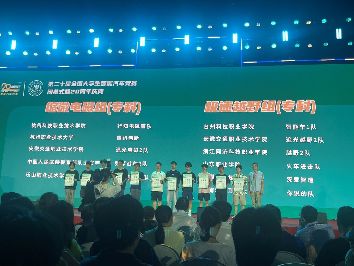 8月18日至20日,第二十屆全國大學生智能汽車競賽全國總決賽在杭州電子科技大學成功舉辦。總決賽共有來自哈爾濱工業(yè)大學、武漢大學、同濟大學等在內(nèi)的297所高校700余支隊伍、3000余名師生同臺競技。經(jīng)過激烈角逐,我校晉級的8支參賽隊伍,在縮微電磁、智慧配送、極速越野、智慧醫(yī)療等賽項中一舉斬獲4項全國一等獎(其中3項亞軍)、3項全國二等獎,并榮獲全國組委會頒發(fā)的“組織貢獻獎”,刷新歷年來高職院校該賽事歷史最佳紀錄。