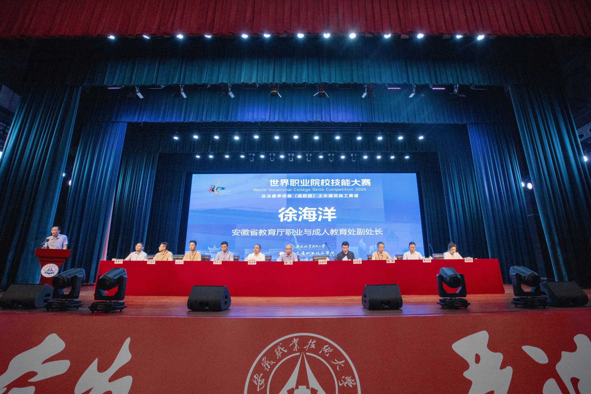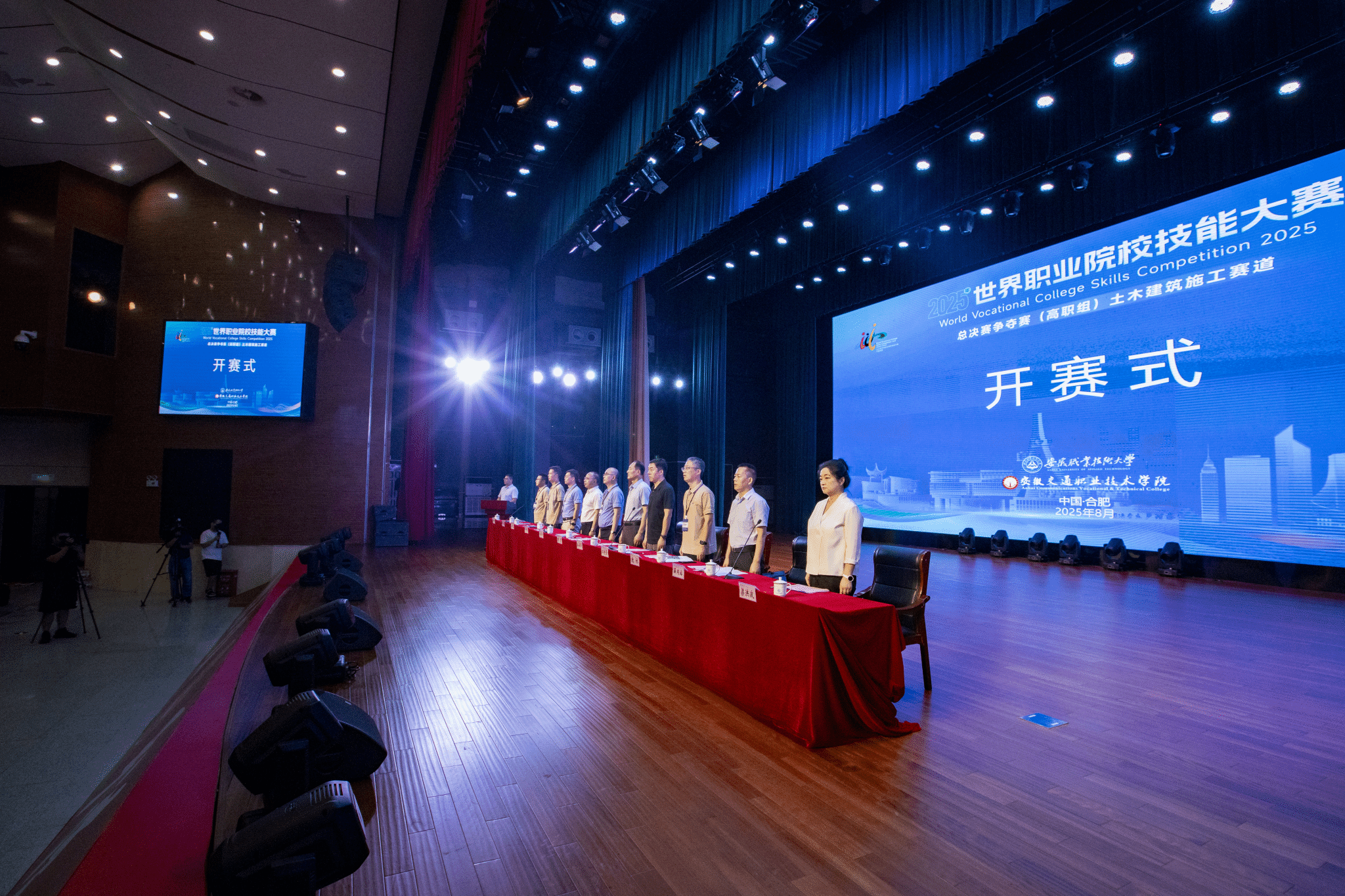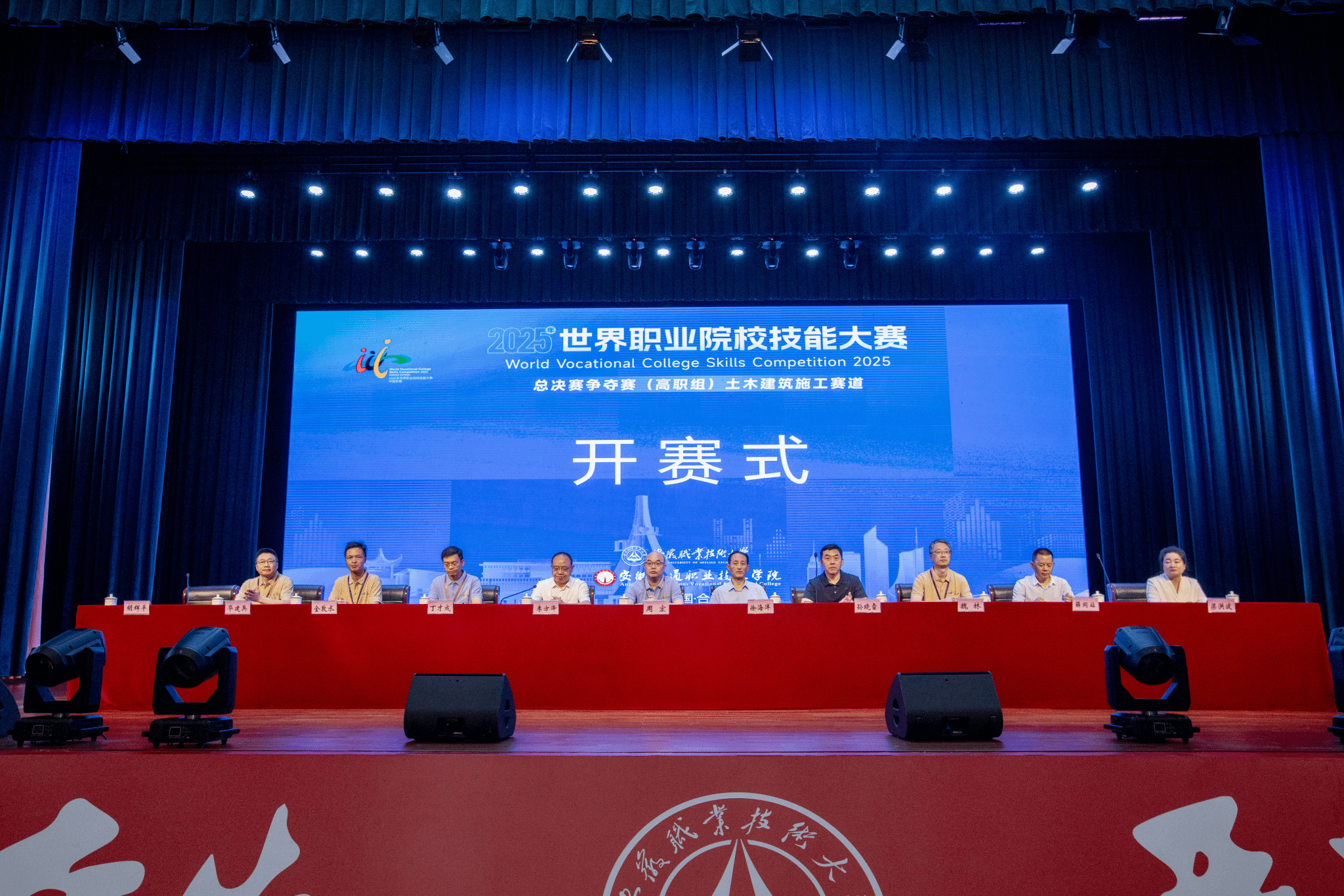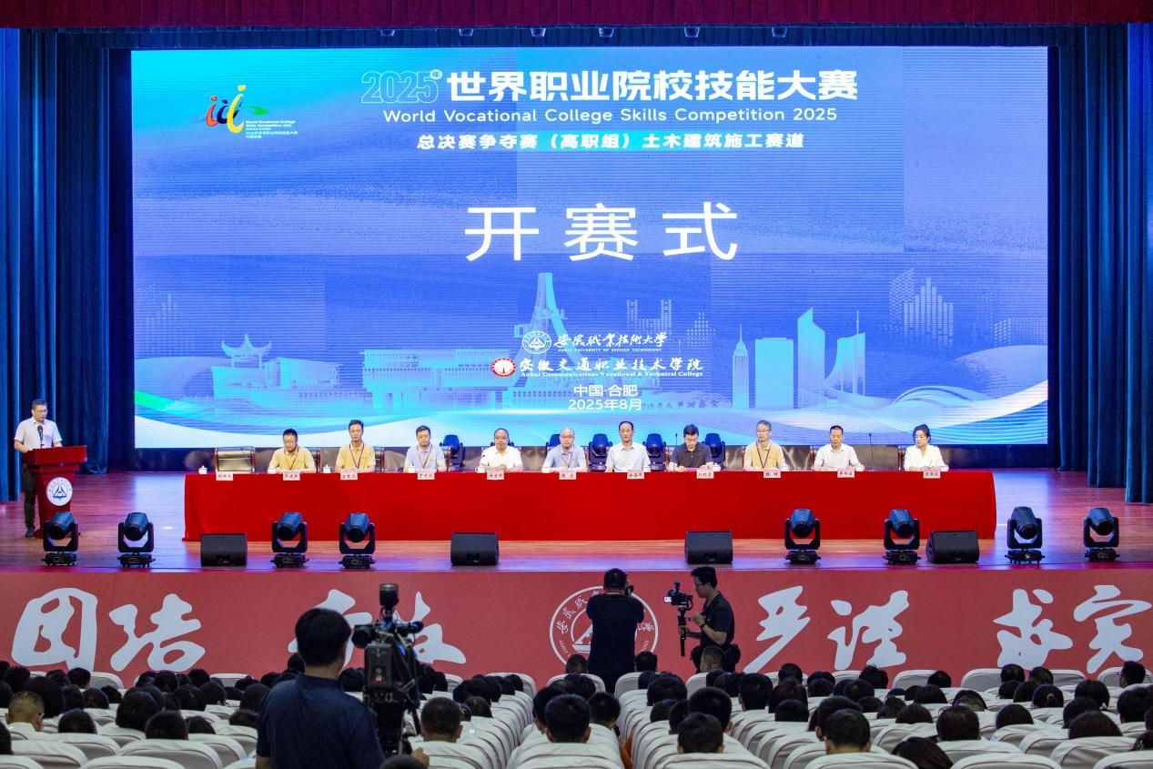 8月27日,2025年世界職業院校技能大賽總決賽爭奪賽高職組土木建筑施工賽道在我校開賽。省教育廳職業與成人教育處副處長徐海洋出席開幕式,校黨委副書記、校長孫曉雷代表學校致辭,安徽職業技術大學黨委主要負責人李方澤出席開幕式并講話。來自全國28個省(自治區、直轄市)的156支代表隊、近800名選手參賽,將在為期5天的比賽中展示技能和風采。
