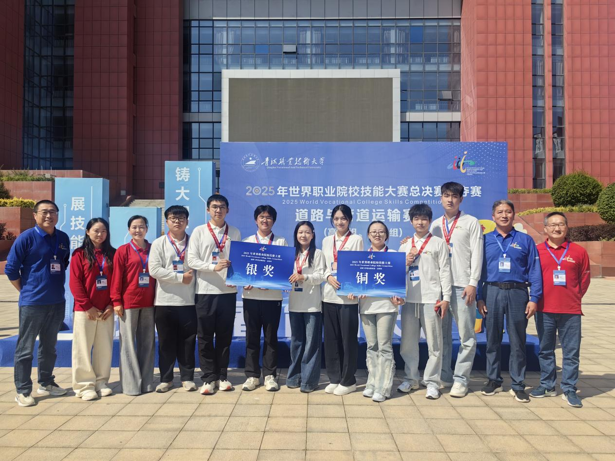 9月13日,2025年世界職業院校技能大賽總決賽(道路與管道運輸賽道)在青海職業技術大學圓滿落幕。在全國28個省(自治區、直轄市)87支隊伍的激烈角逐中,我校土木建筑學院派出的兩支參賽團隊憑借扎實的專業技能成功斬獲1項銀獎與1項銅獎——其中,由齊永生、曹松來老師指導,楊楠、盛發、李子豪、周祥等同學組成的團隊斬獲銀獎;由沈曉燕、胡雪梅老師指導,范金福、檀靜、涂雨、李澤航等同學組成的團隊則奪得銅獎。