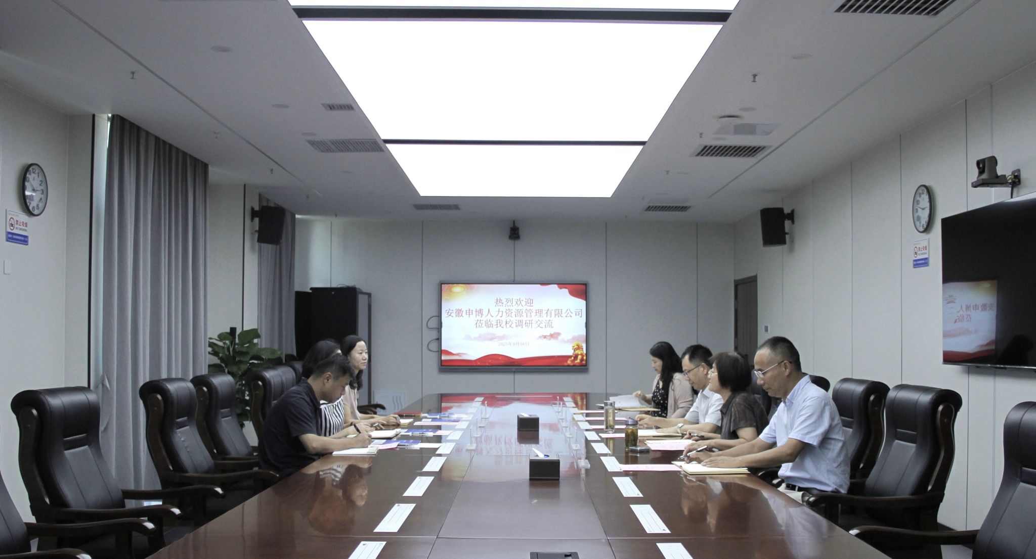 9月16日,安徽申博人力資源有限公司總經理王斌、副總劉麗、市場部總監遲軍等一行人蒞臨我校開展交流洽談,校黨委書記楊菲鈴、軌道交通學院黨總支書記汪思曼、副書記承友明、招就辦公室負責人付玥出席座談會。