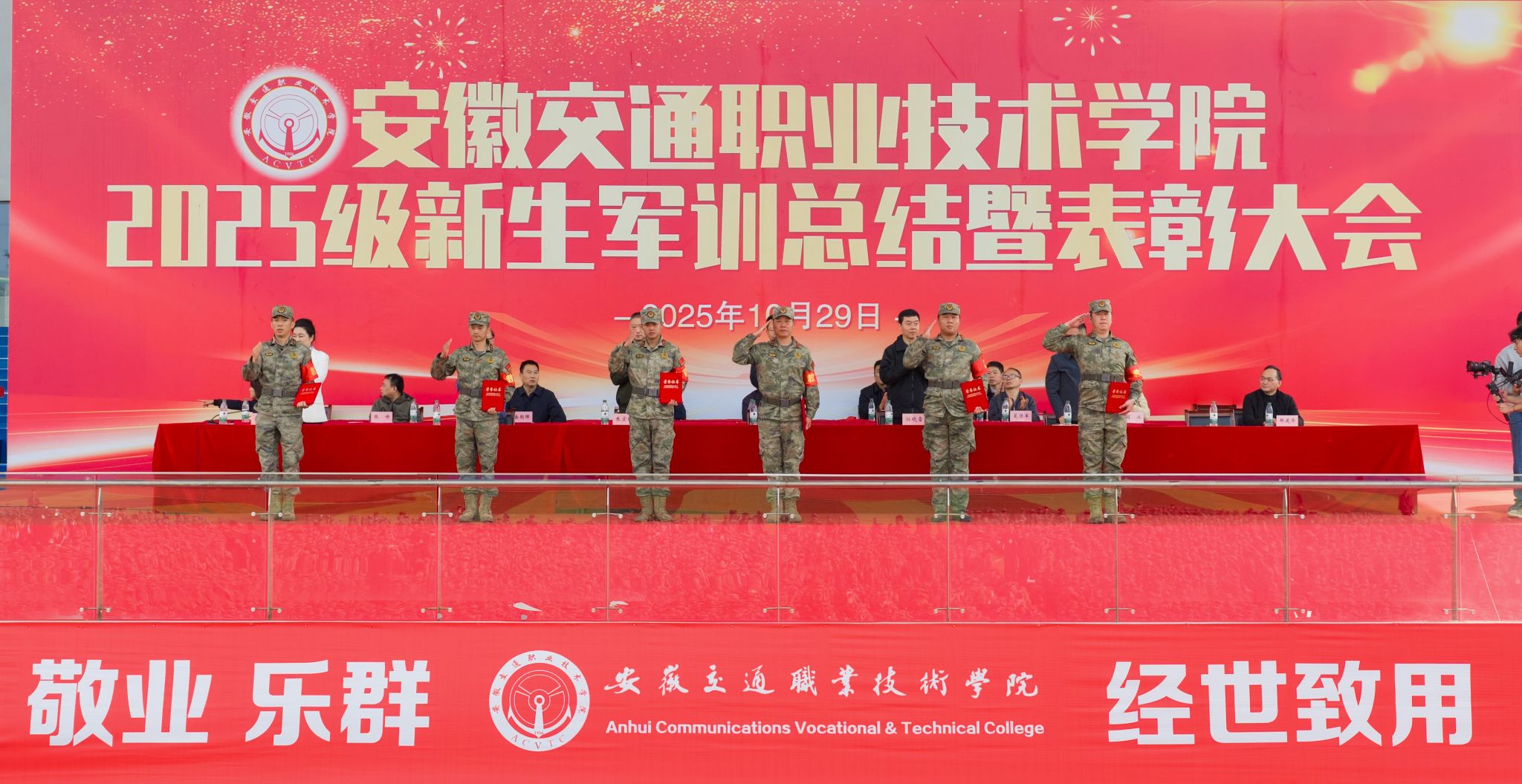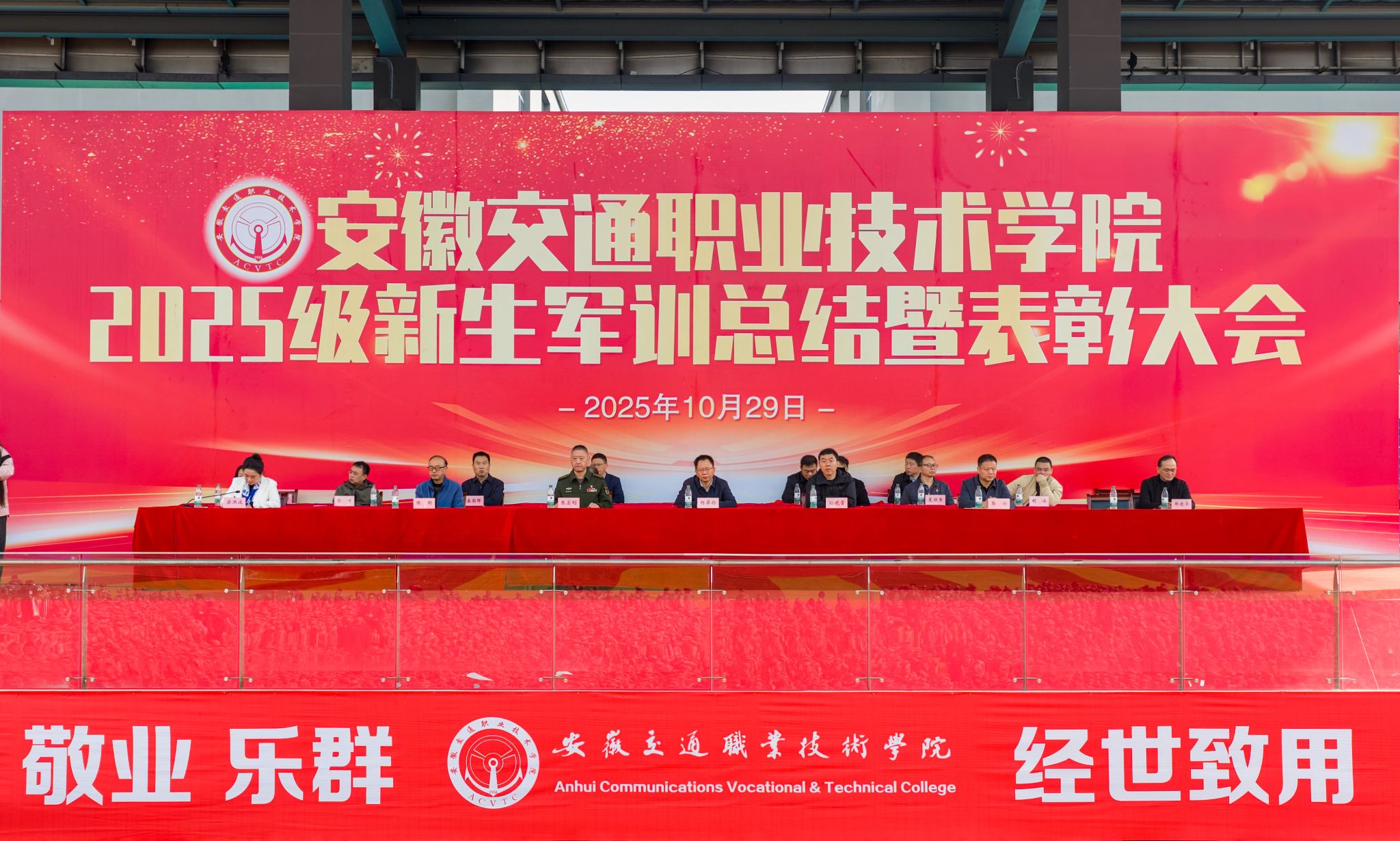 10月29日上午,學校2025級新生軍訓總結暨表彰大會在新橋校區南操場隆重舉行。校黨委書記楊菲鈴,校黨委副書記、校長孫曉雷,包河區委常委、區人武部部長朱宏剛,校黨委委員、副校長韋兵,校黨委委員、副校長梁洪波,校黨委委員、紀委書記郭六,校正處級督導員陳明,各二級學院和相關職能部門負責人,包河區武裝部承訓教官和全體2025級新生參加。典禮由梁洪波主持。