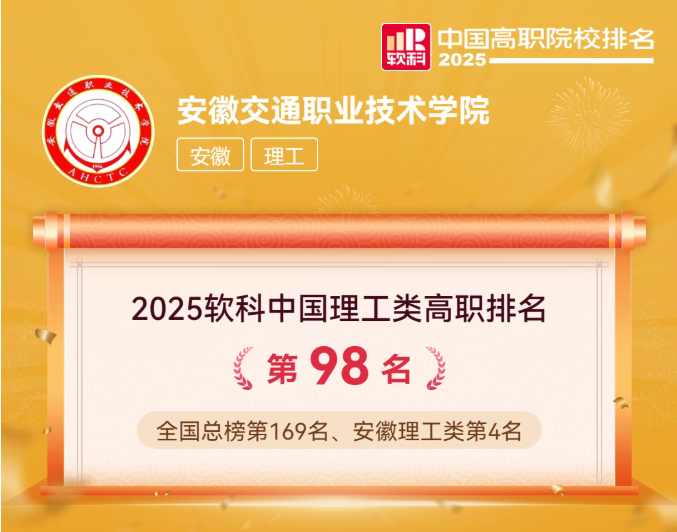 此前,高等教育評價機構(gòu)軟科發(fā)布“2025軟科中國高職院校排名”,我校憑借扎實的辦學(xué)實力和顯著的發(fā)展成效,排名實現(xiàn)大幅躍升——位列全國總榜第169名、全國理工類第98名、安徽理工類高職第4名。相較于2024年排名,我校全國總榜位次從第241名攀升72位,全國理工類高職排名從第149名前進51位,安徽理工類高職排名也從第5名躋身第4名,綜合辦學(xué)水平得到權(quán)威評價機構(gòu)的高度肯定。