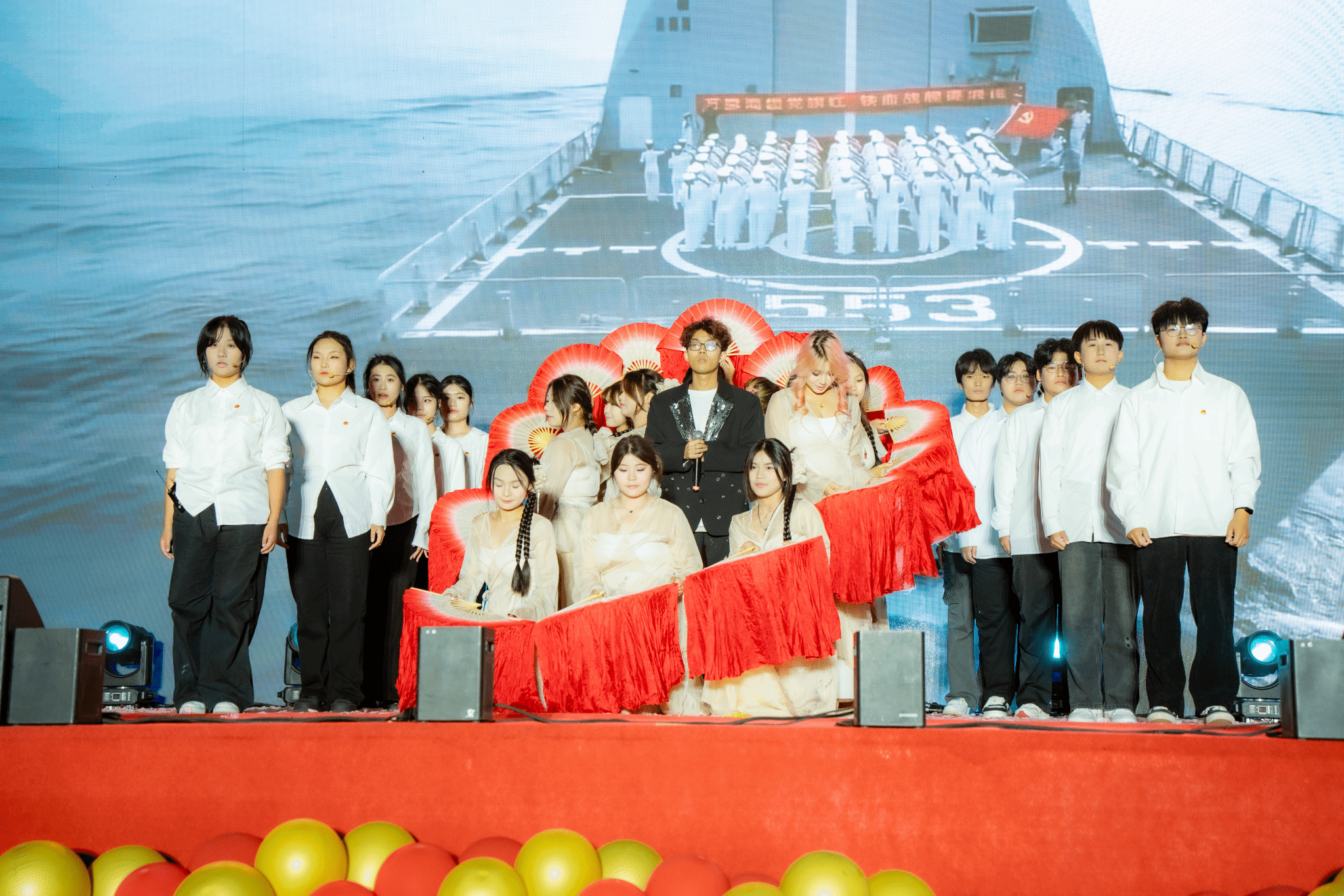 隨著旋律響起、燈光點亮,聯歡會序章盡顯熱烈氛圍。舞蹈團成員踏著鼓點躍動,初聚的燈光化作新程啟航的星火;語言類節目笑點十足,盡顯青春朝氣;水袖舞柔美婉轉,將溫柔融入節拍;歌曲表演以聲傳情,讓熱愛隨晚風飄蕩,每一幕都展現著青春相遇的鮮活模樣。