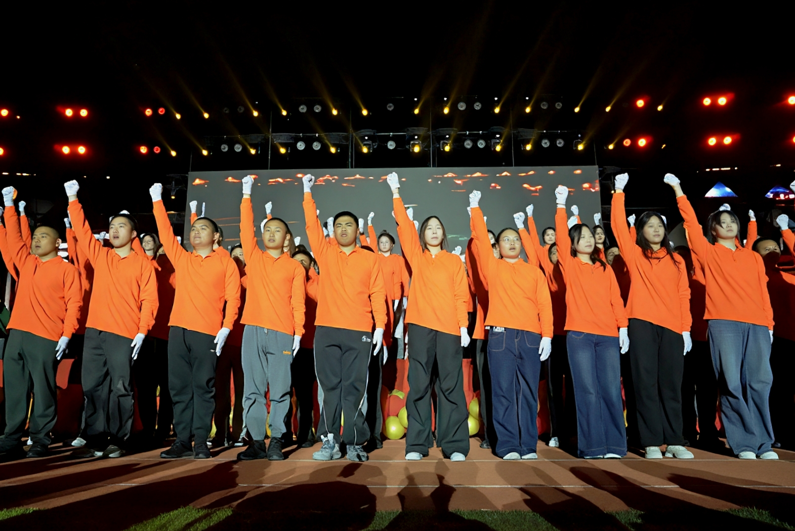 舞臺上,舞步交織出斑斕色彩,合唱與民族舞共演的《銘記》飽含深情,“同行” 的青春熱意在并肩起舞間愈發濃烈,青春脈搏與時代鼓點同頻共振。《青春奔跑》方陣踏響奮進節奏,聯歡會最終以《我愛你中國》大合唱收尾,用嘹亮歌聲書寫向光而行的青春誓言,彰顯家國情懷。
