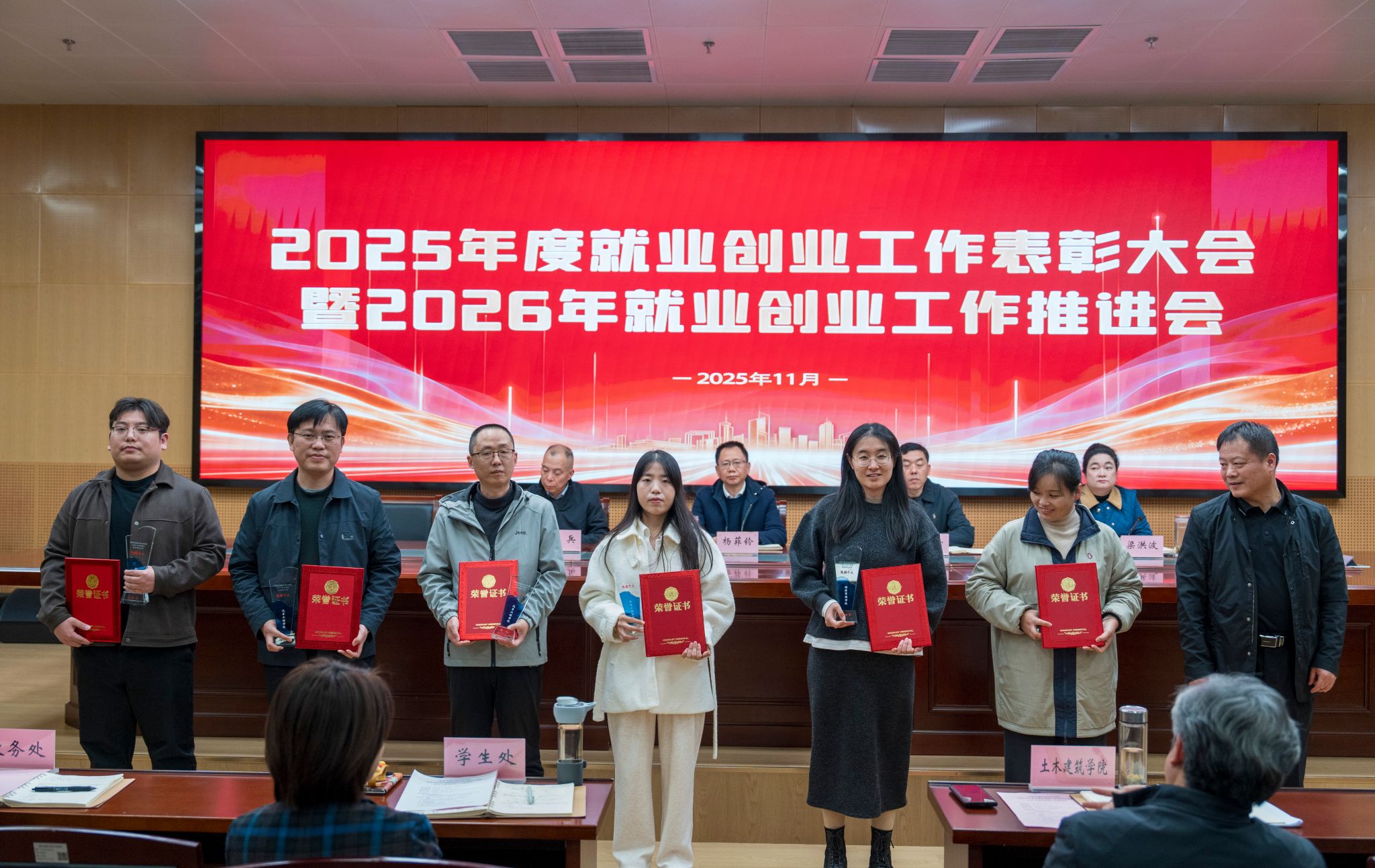 校領導為就業創業工作先進個人代表和就業工作先進集體頒發了榮譽證書