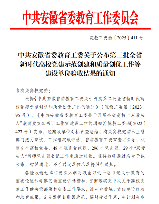 創建期間,黨支部在教學科研與學生培養方面成果突出。成功申報安徽省“雙高計劃”專業建設項目、8個省級質量工程項目、3個自然科學項目及1項橫向課題。教師團隊獲安徽省教學能力大賽省賽一等獎。學生在多項競賽中屢獲佳績,包括世界職業院校技能大賽、金磚國家職業技能大賽、省職業院校技能大賽、“互聯網+”創新創業大賽等,累計獲國家級、省級獎項20余項。