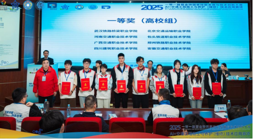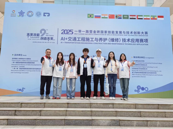 12月4日至7日,2025“一帶一路”暨金磚國家技能發(fā)展與技術(shù)創(chuàng)新大賽之AI+交通工程施工與養(yǎng)護(維修)技術(shù)應(yīng)用賽項全國總決賽在廣西南寧成功舉辦。我校土木建筑學(xué)院由葉生、葉枝老師指導(dǎo)的鐵路隊(24檢測2班楊清琳、24檢測4班毛樂奕陽)榮獲團體一等獎;由楊銳、武余波老師指導(dǎo)的公路隊(23路橋4班王超、24路橋1班汪妍)榮獲團體三等獎。葉生、葉枝兩位老師獲評“優(yōu)秀指導(dǎo)教師”,學(xué)校榮獲“最佳組織獎”。