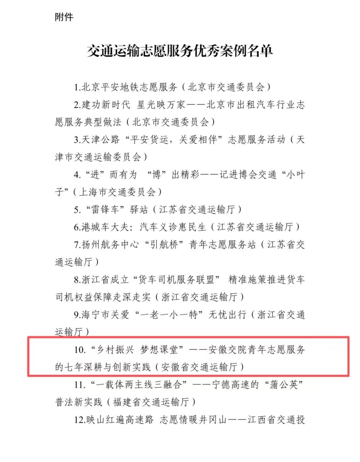 我校案例“鄉村振興 夢想課堂”——安徽交院青年志愿服務的七年深耕與創新實踐成功入選。