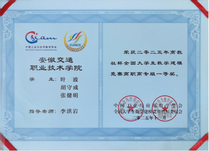 近日,2025年全國大學(xué)生數(shù)學(xué)建模競賽獲獎(jiǎng)證書正式發(fā)放。我校土木建筑學(xué)院由23路橋7班葉波、23路橋5班胡守成、24路橋2班張健明三位同學(xué)組成的參賽團(tuán)隊(duì),在李洪巖老師的指導(dǎo)下,榮獲高職高專組全國一等獎(jiǎng),實(shí)現(xiàn)了我校在該項(xiàng)高水平賽事中的歷史性突破。同時(shí),學(xué)校榮獲“安徽賽區(qū)優(yōu)秀組織獎(jiǎng)”,李洪巖老師獲評(píng)“安徽賽區(qū)優(yōu)秀指導(dǎo)教師”,取得競賽成績的全面豐收。
