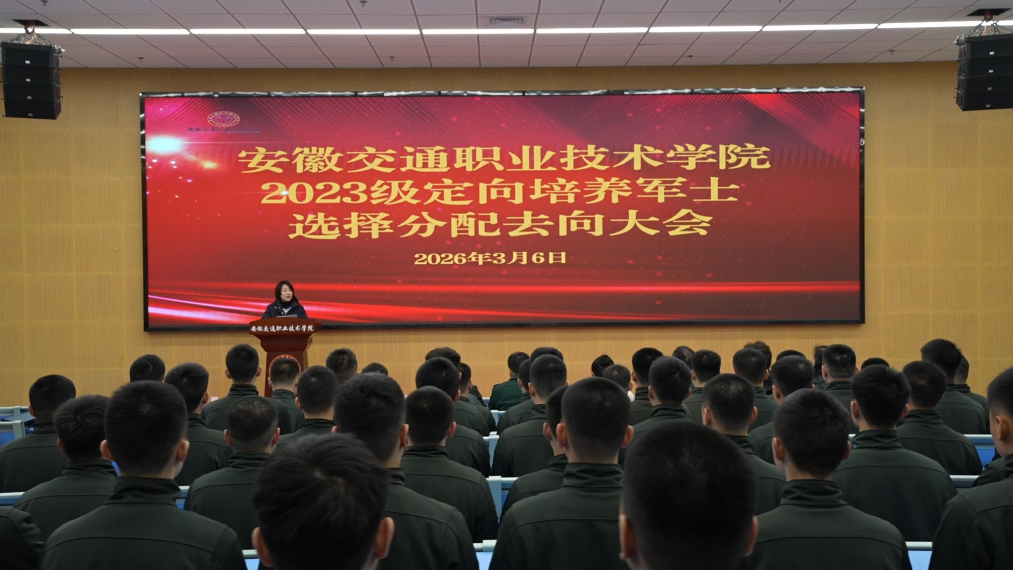 春風(fēng)浩蕩啟新程,青春逐夢(mèng)赴軍營(yíng)。3月6日,學(xué)校2023級(jí)定向培養(yǎng)軍士選擇分配去向大會(huì)在圖書館東報(bào)告廳舉行。教學(xué)指導(dǎo)總隊(duì)有關(guān)領(lǐng)導(dǎo)、校黨委委員、副校長(zhǎng)梁洪波及定向培養(yǎng)學(xué)院相關(guān)負(fù)責(zé)同志、2023級(jí)定向培養(yǎng)軍士、教官及輔導(dǎo)員參會(huì),大會(huì)由學(xué)生處處長(zhǎng)、定向培養(yǎng)學(xué)院院長(zhǎng)汪倩主持。