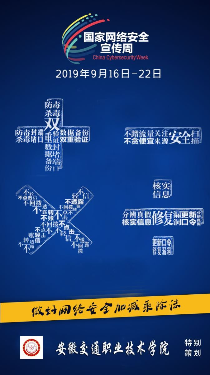 為增強校園網絡安全意識,提高網絡安全防護技能,按照中共安徽省委教育工作委員會關于《開展 2019年網絡安全宣傳周活動的通知》特制定出我院校園網絡安全宣傳周活動方案: