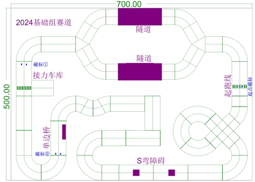 (3)比賽場地內,在比賽時除了裁判與1名隊員之外,不允許任何其他參賽人員進入場地。比賽過程中,允許參賽隊員進入場地,協助清理比賽賽道。(4)不允許賽車的任何傳感器或者部件損毀賽道;