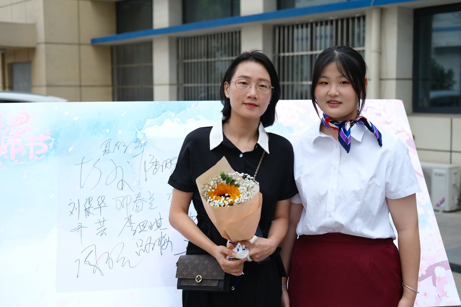 9月9日,城信系文藝部同學(xué)身著系服手捧鮮花在信息樓、看臺樓、教學(xué)樓前迎接著老師的到來。“教師節(jié)快樂!”沁人心脾的鮮花和溫暖的話語,飽含了學(xué)生們濃濃的情誼,表達(dá)了對老師們傳道受業(yè)解惑的感謝。