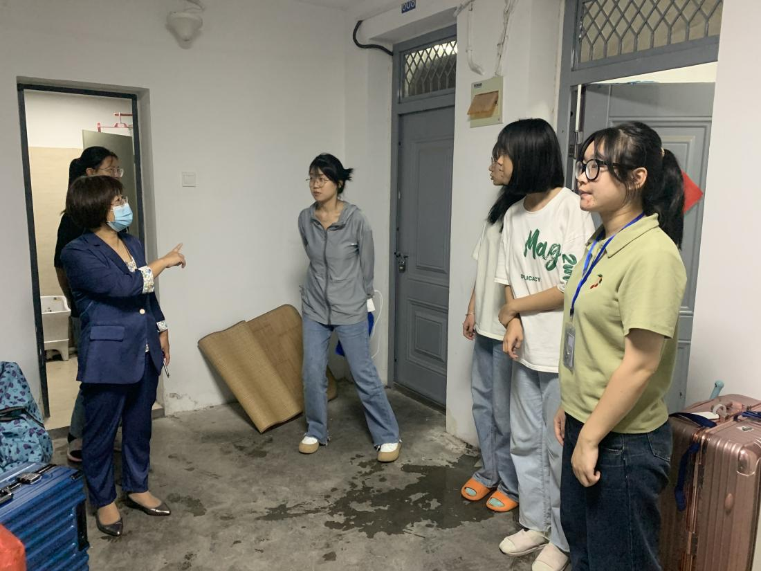 9月14日當(dāng)晚,汪思曼、岳朝暉、陶琪帶隊(duì),2022級(jí)新生輔導(dǎo)員陪同,走訪了新生宿舍。他們傾聽新生訴求、了解新生困難,仔細(xì)查看了寢室的各種設(shè)施是否完善,宿舍水電、空調(diào)能否正常使用,并叮囑新生要加強(qiáng)疫情防控意識(shí),注意保暖、預(yù)防感冒,培養(yǎng)良好的生活作息習(xí)慣,盡快融入大學(xué)生活,適應(yīng)自己的新角色。