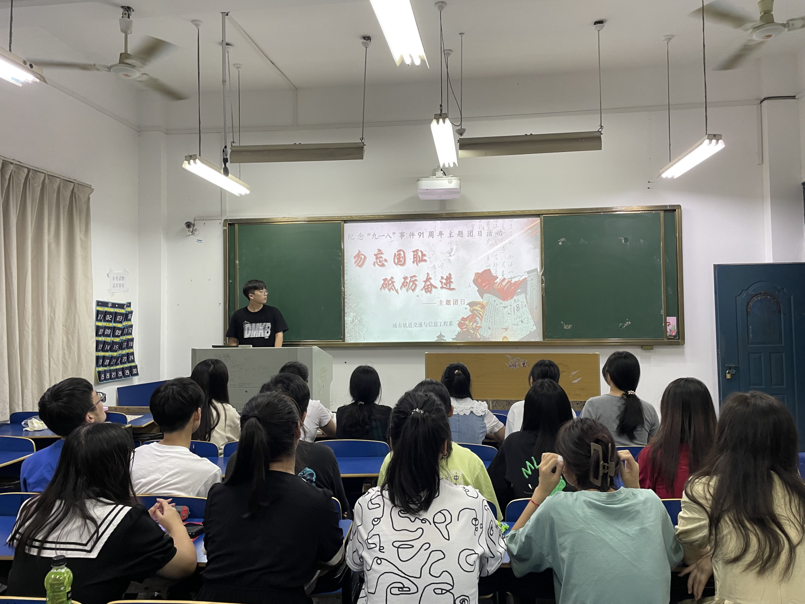 時值九一八事變 91 周年,城市軌道交通與信息工程系團總支組織開展“勿忘國恥、砥礪奮進”主題團日活動,引導教育廣大學生勿忘國恥、砥礪前行,立志為中華民族偉大復興貢獻力量。