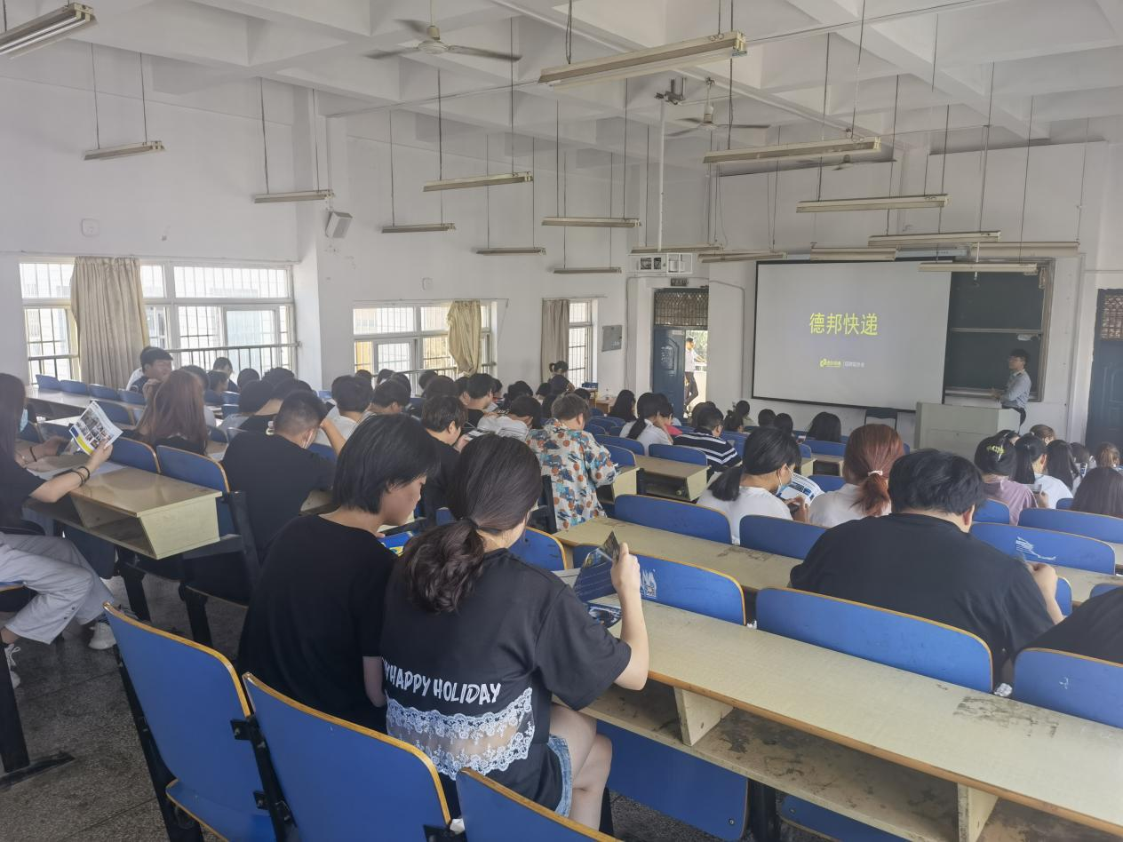 本次宣講會邀請了安徽順豐速運、德邦快遞、安徽順豐通訊服務有限公司三家企業現場宣講,在近3個小時的宣講會上,企業代表依次通過播放宣傳片、講解PPT等方式向同學們詳細介紹了行業發展、公司簡介、應聘方式等,并對同學最關注的招聘崗位、職業發展路徑、薪酬福利等問題,做了詳細的介紹,現場互動氣氛熱烈。
