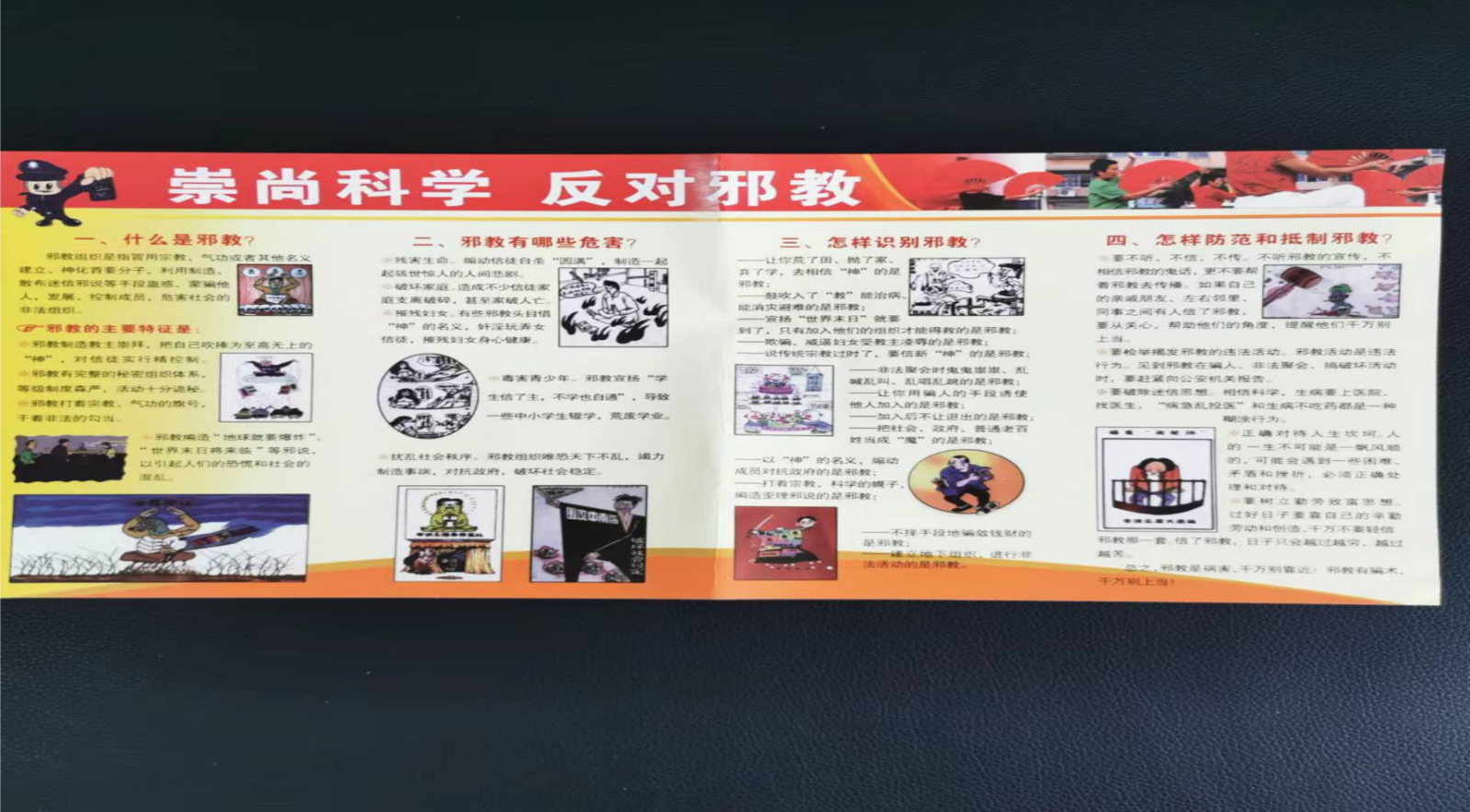 活動現場,警官們向師生詳細解釋了什么是邪教、什么是邪教組織、怎樣制止邪教行為等,同時向師生散發了有關邪教組織的宣傳資料。