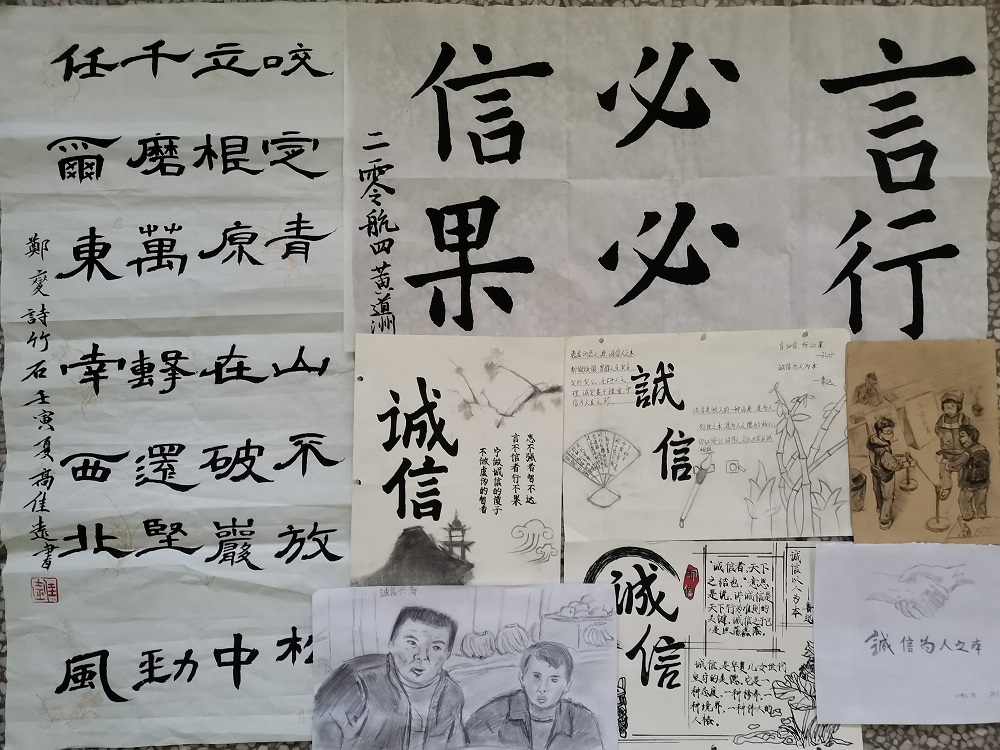 5月中下旬,航海系積極響應學院號召,圍繞考試誠信、資助誠信等方面,開展“誠信立身、勵志成才”主題原創作品征集與評選活動,20級、21級各班學生積極踴躍參加,提交了繪畫、剪紙、海報、三行詩、軟筆書法、硬筆書法等多種形式的原創作品,以身邊小事反映誠信大主題。