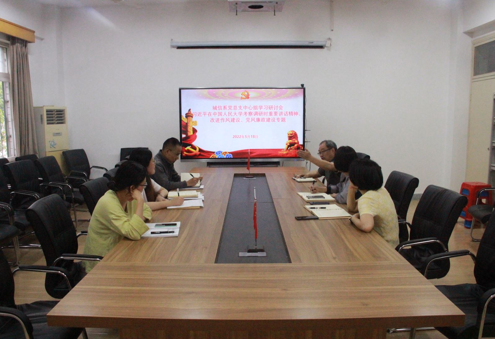 5月18日下午,城信系黨總支召開習(xí)近平在中國(guó)人民大學(xué)考察調(diào)研時(shí)重要講話精神、改進(jìn)作風(fēng)建設(shè)、黨風(fēng)廉政建設(shè)專題中心組學(xué)習(xí)研討會(huì)議。系黨總支委員參加學(xué)習(xí)交流,會(huì)議由系黨總支書記汪倩主持。