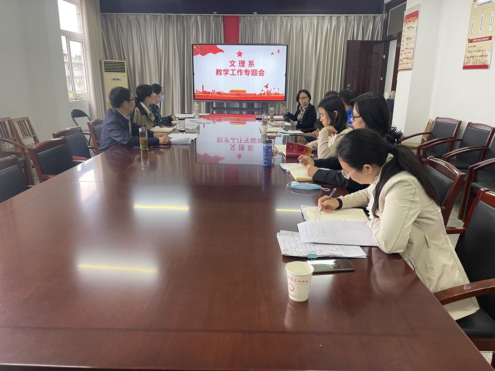 “一改兩為”工作開展以來,文理系聚焦“教師教學能力提升”和“課堂教學效果提升”,實施“雙提升、促育人”行動。4月29日下午,文理系召開了教學工作專題會議,會議學習了習近平總書記在中國人民大學考察時的重要講話精神,總結了“雙提升、促育人”行動取得的進展,為推進下一步工作落實提出了要求。系班子成員和教研室負責人、教學管理人員等參會,會議由系黨總支書記昌希燦主持。