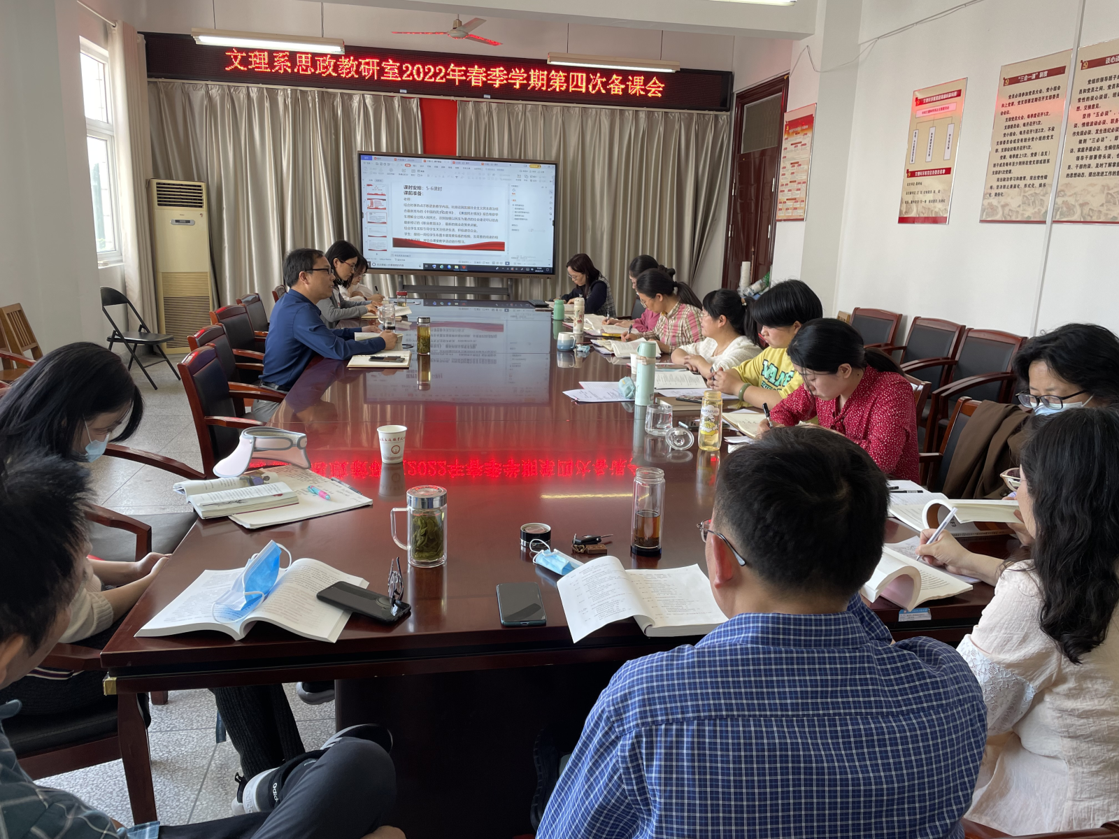 會議指出,教研室集體備課機制是提高教學質量的有效手段。新學期以來,中文、英語、體育等教研室都開展了不同形式的集體備課活動,有效提升了公共課教學水平和課堂教學效果。特別是思政教研室聚焦馬克思主義中國化重要理論成果,開展了四次集體備課活動,其間緊密結合十九屆六中全會精神、兩會精神,以及當前疫情防控、俄烏沖突、國家經濟形勢、職業教育法等熱點問題,優化課堂設計,豐富課堂內容,有力推動了思政課育人主渠道作用的發揮。