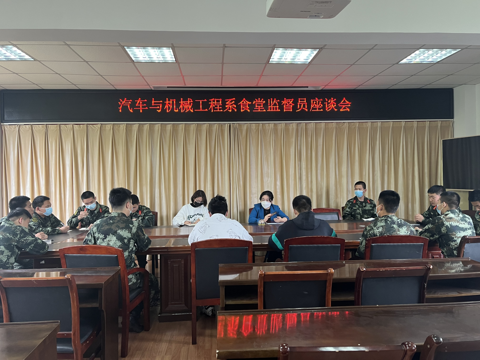 為進(jìn)一步落實(shí)“一改兩為”,用心用情為學(xué)生辦實(shí)事,切實(shí)提升封閉管理形勢(shì)下學(xué)生的生活滿意度,4月29日下午,汽機(jī)系召開(kāi)食品安全學(xué)生監(jiān)督員座談會(huì)。系主任梁洪波、系團(tuán)總支書記鐘飛飛和全體學(xué)生監(jiān)督員參加會(huì)議。