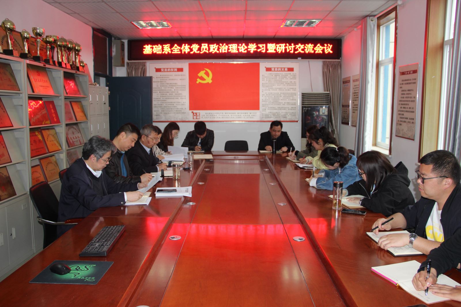 4月13日下午,基礎系召開全體黨員政治學習會暨研討交流會,系黨總支書記邵登泰主持會議,全體黨員參加。