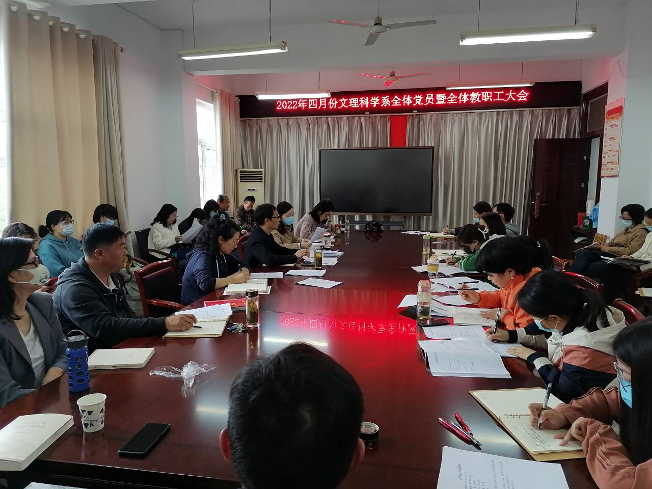 4月13日下午,文理科學(xué)系召開2022年4月全體教職工會(huì)議暨全體黨員大會(huì)。系黨總支書記昌希燦,系黨總支副書記、副主任王玨出席會(huì)議,文理科學(xué)系全體教職工參加會(huì)議。會(huì)議由昌希燦主持。