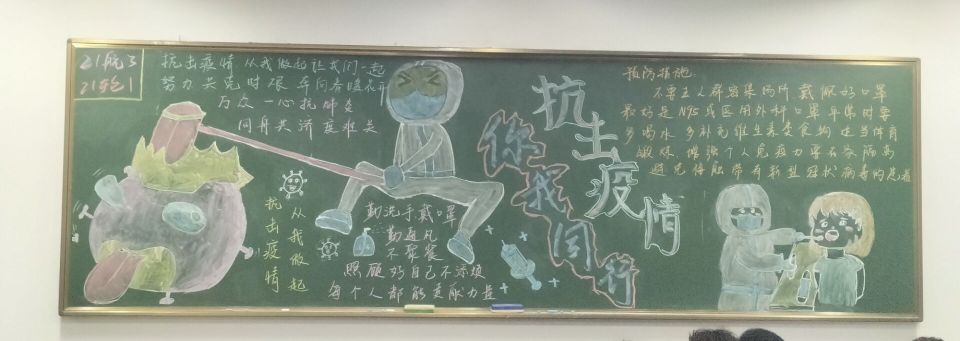 本次的活動得到了各班級的積極響應,黑板報緊緊圍繞疫情防控、校園安全為主題,版面設計美觀,內容豐富,色彩明亮,既普及了校園安全的知識,介紹了日常疫情防控的有效舉措,又表達了對醫務工作者的崇高敬意。