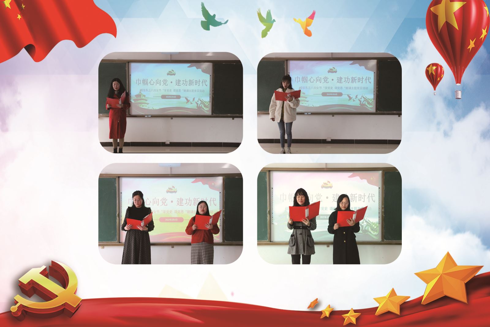 3月4日下午,為深入學(xué)習(xí)貫徹習(xí)近平新時(shí)代中國特色社會(huì)主義思想,深入開展黨史學(xué)習(xí)教育,在“三八”國際勞動(dòng)?jì)D女節(jié)到來之際,城信系舉辦“學(xué)黨史·頌黨恩”朗誦主題黨日活動(dòng)暨手工體驗(yàn)活動(dòng),系全體女教職工參加。
