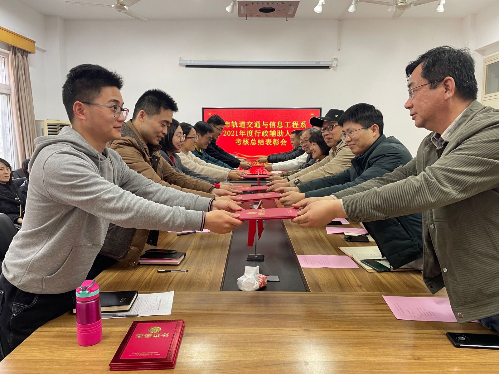 最后,由系領導對受表彰的8名行政輔助人頒發證書,進一步激發了全系教職工奮發向上、勇爭一流的干勁和斗志。