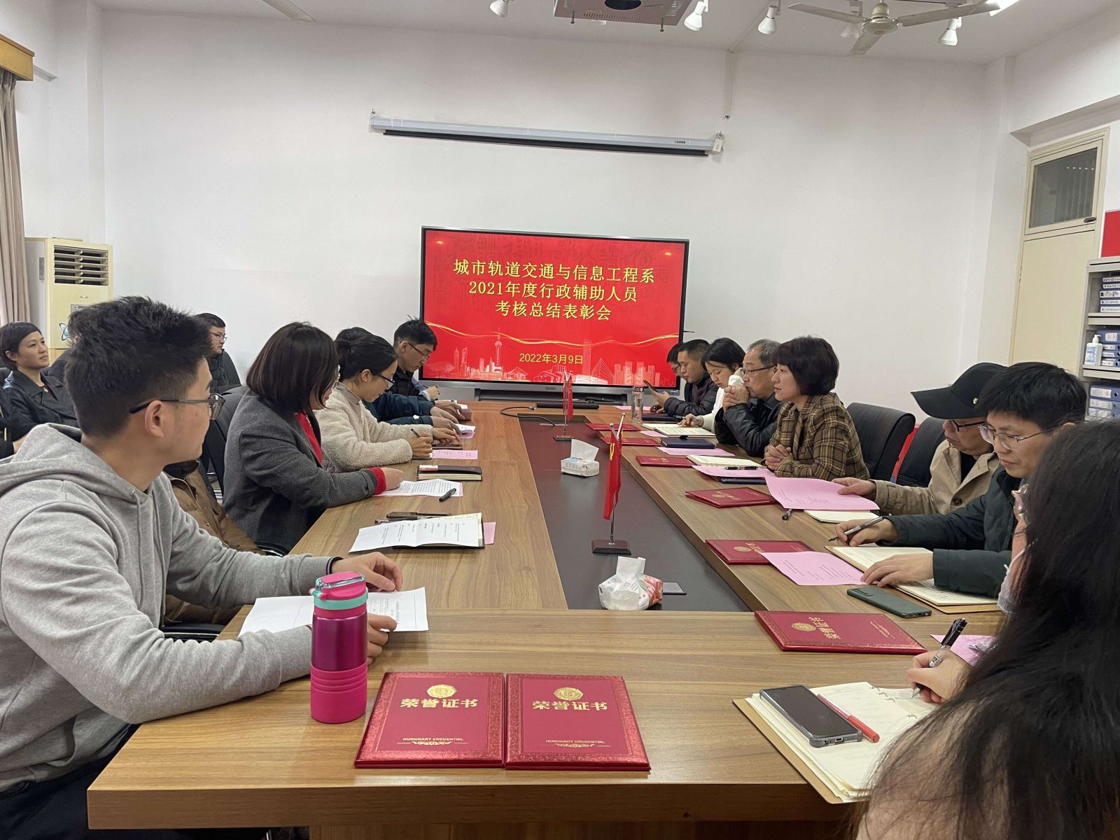 為進一步加強教師隊伍建設,提高教師隊伍整體素質,3月9日下午,城信系在系會議室召開2021年度行政輔助人員考核總結表彰會,系黨政領導,各部門負責人,全體行政輔助人員參加會議,系黨總支書記汪倩主持會議。