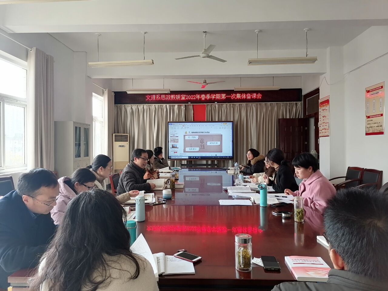 為幫助思政課教師更好地領會和把握2021版《毛澤東思想和中國特色社會主義理論體系概論》新教材的內容體系,進一步提升理論研究能力和課堂教學水平,2月26日下午,文理科學系思政教研室召開2021-2022學年第四次集體備課會。系黨總支書記昌希燦,系黨總支副書記、副主任王玨出席備課會,全體專(兼)職思政課教師參會,會議由燕艷老師主持。
