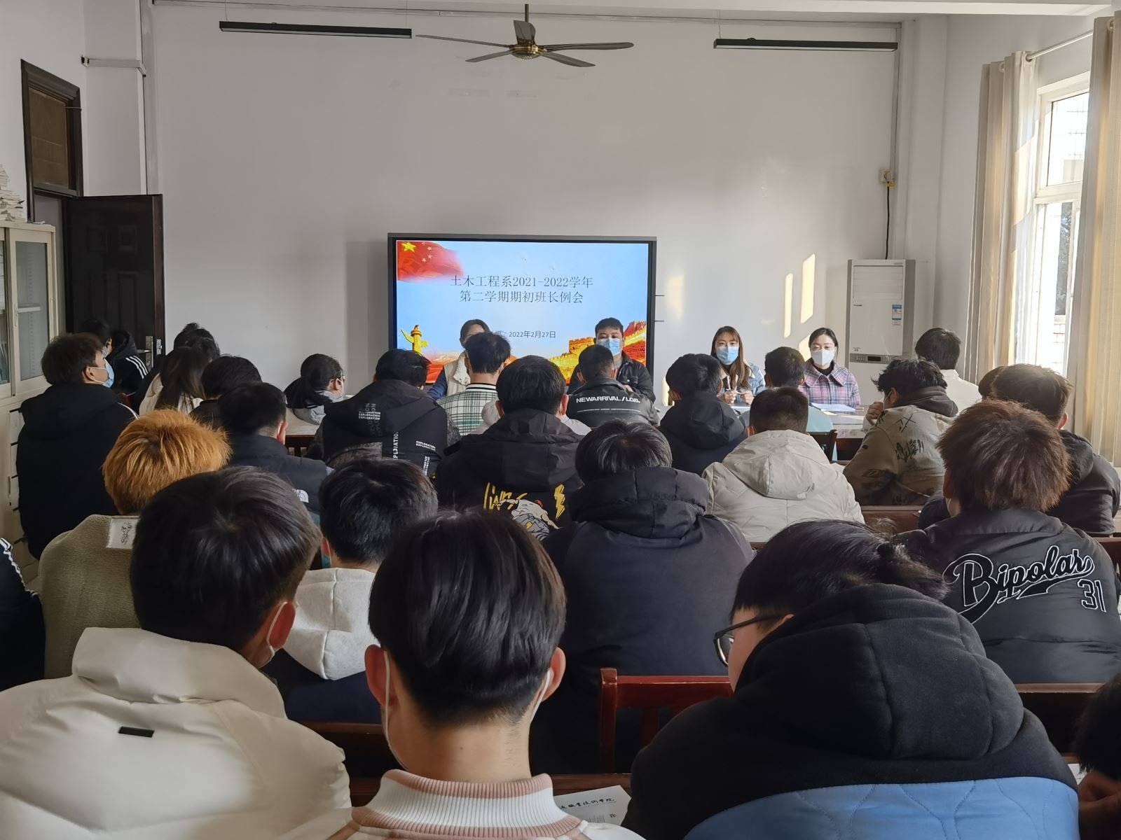 2月27日下午,土木系2021-2022學年第二學期開學班長例會在系會議室召開。會上蔣鳳嬌給各位班長重點強調了具體的疫情防控返校要求,以及材料報備、請銷假、考勤、宿舍衛生等其他方面。三位新任專職輔導員張瑤、宣榮榮、梅維朝先后發言,與班長們交流。