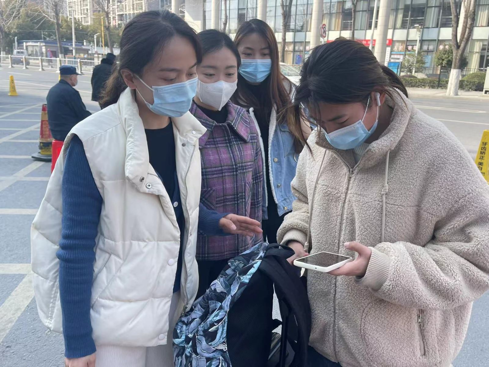 2月26日至27日期間,蔣鳳嬌與張瑤、宣榮榮老師在學院北門核查疫情防控返校情況,檢查學生48小時內核酸檢測陰性證明、健康碼(含疫苗接種證明)和行程卡“綠碼”。