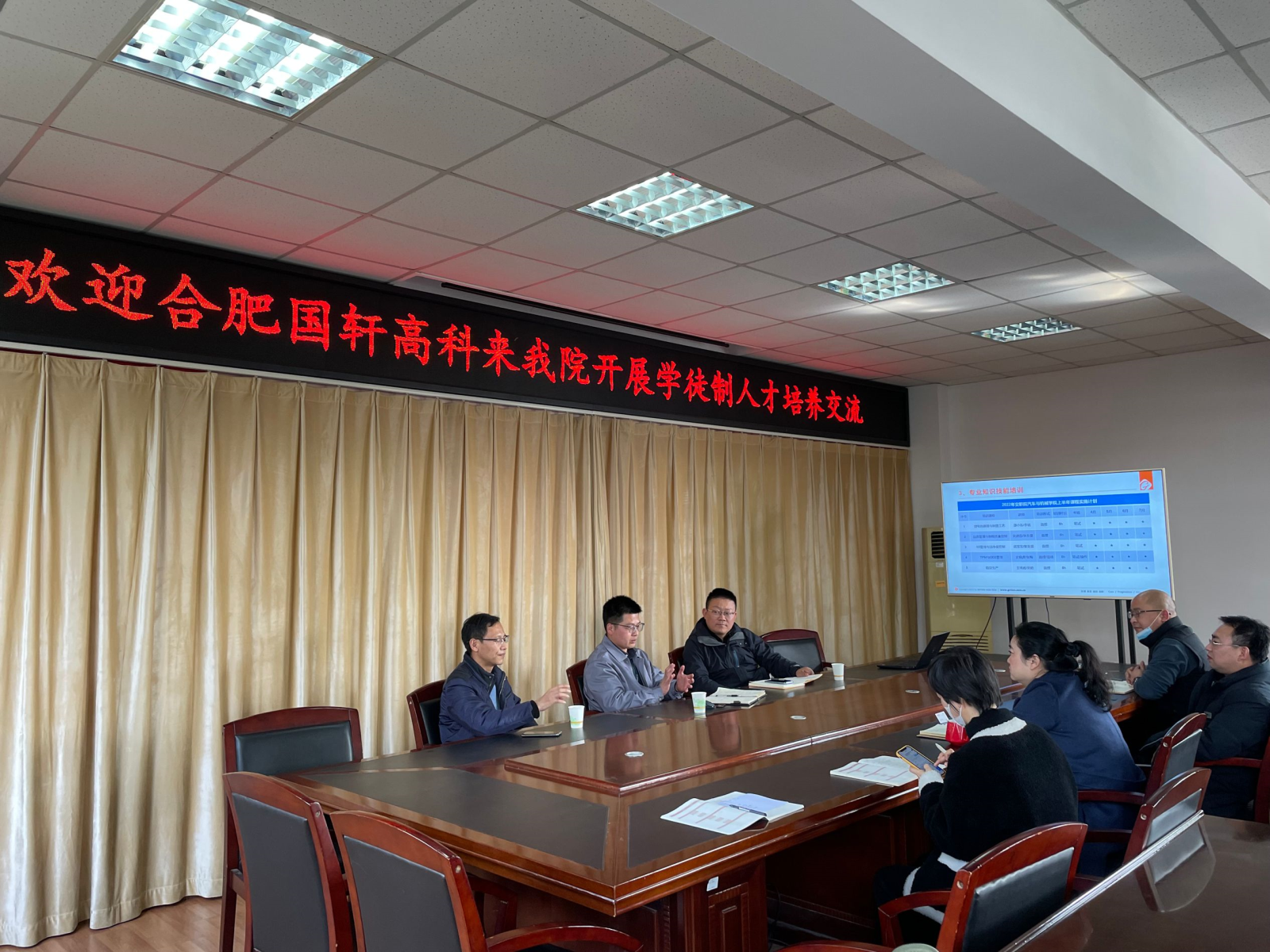 會上,雙方就“國軒高科班”的人才培養方案、課程設置、教材開發、授課方式、管理模式等進行了深入探討。經過討論研究,確定了《鋰電池原理與制造工藝》《品質管理與制程質量控制》《5S管理與潔凈度控制》《TPM與OEE管理》《精益生產》五門課程的授課計劃、考核方式等相關事項。并確定了下一步2020級“國軒高科班”開班宣講會事宜。