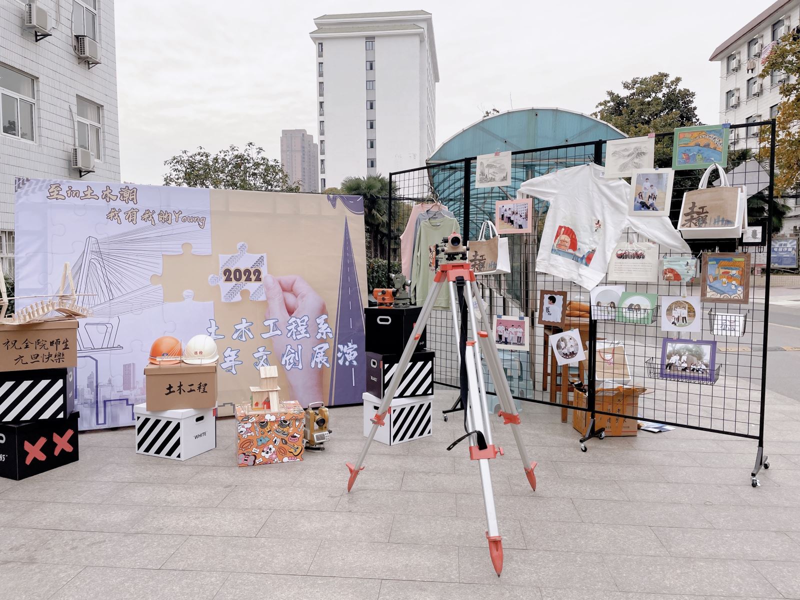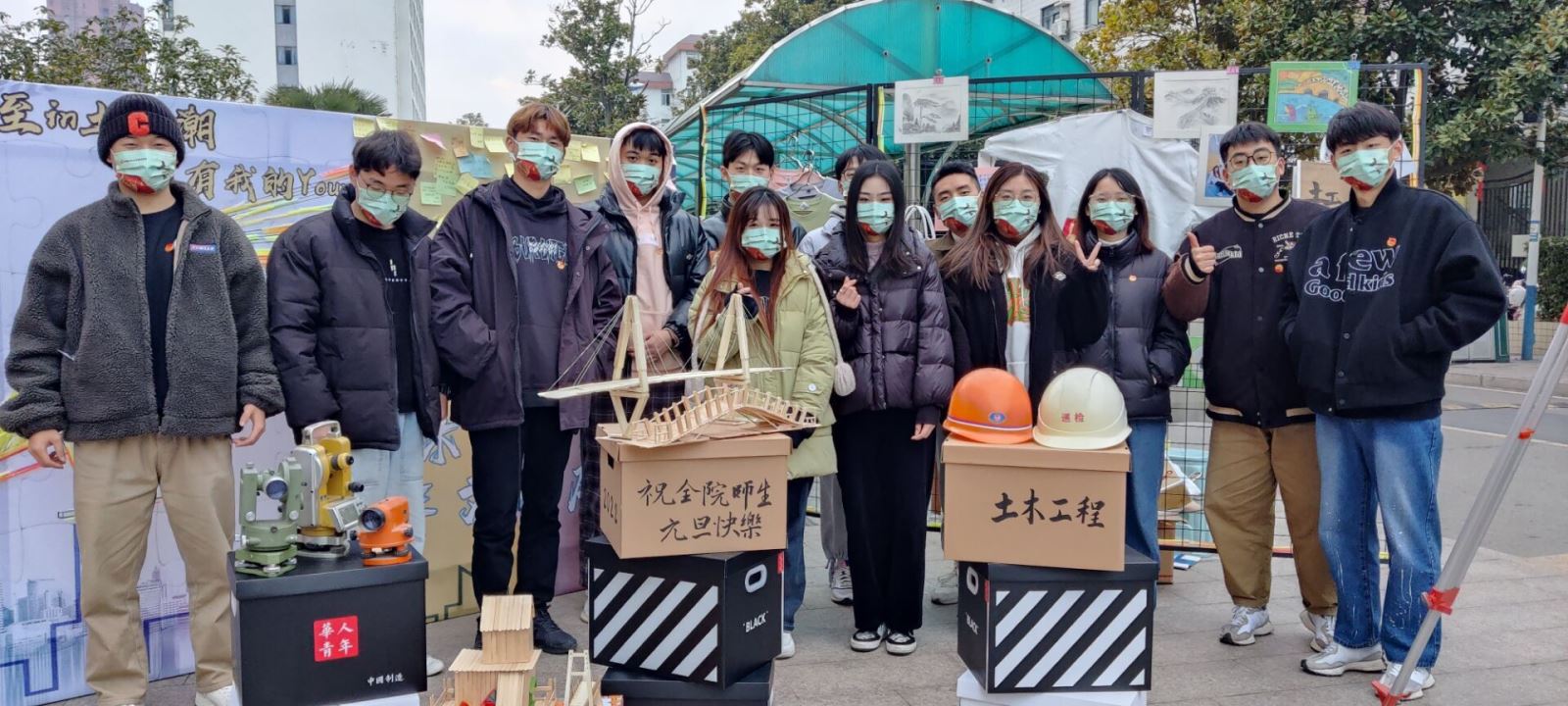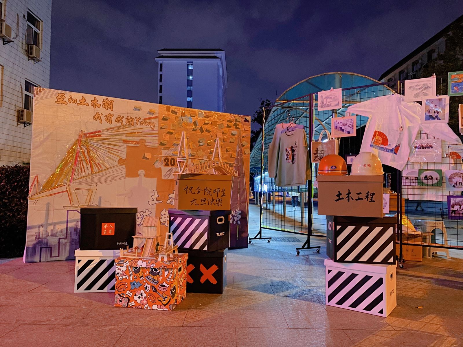 12月31日,土木工程系在團總支學生會的策劃下,在教學樓下開展了“至in土木潮 我有我的Young”跨年文創展演活動。土木系學生黨支部也參加了此次活動,系部老師和學生一起動手,共同完成了此次展演的布置。