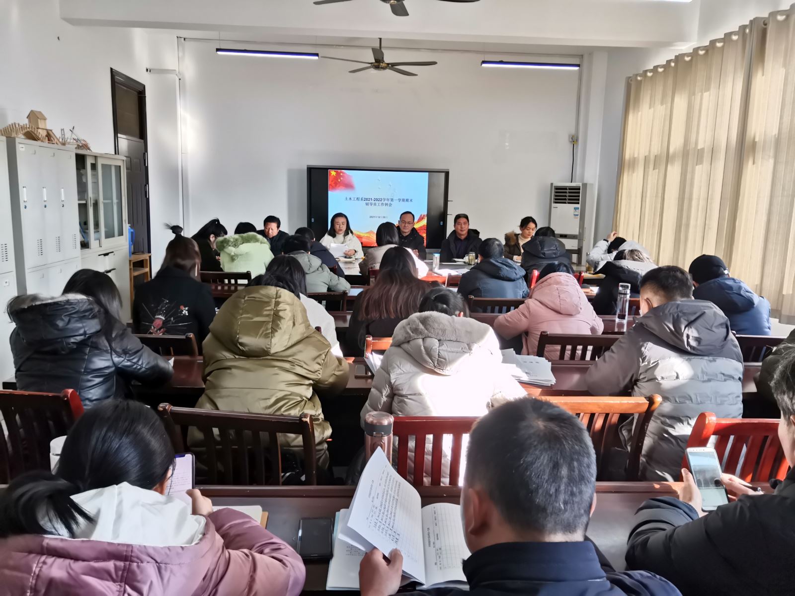 12月30日下午,土木系在系會議室召開本學期期末輔導員工作會議,系黨總支書記鄒建華、副主任王東、副書記朱蓉、副主任王守勝以及全體輔導員參加。