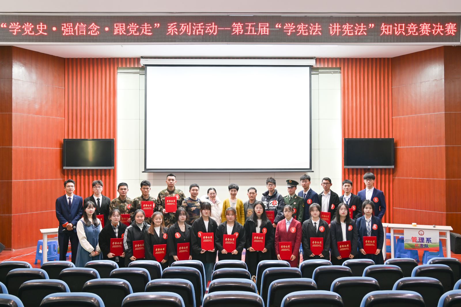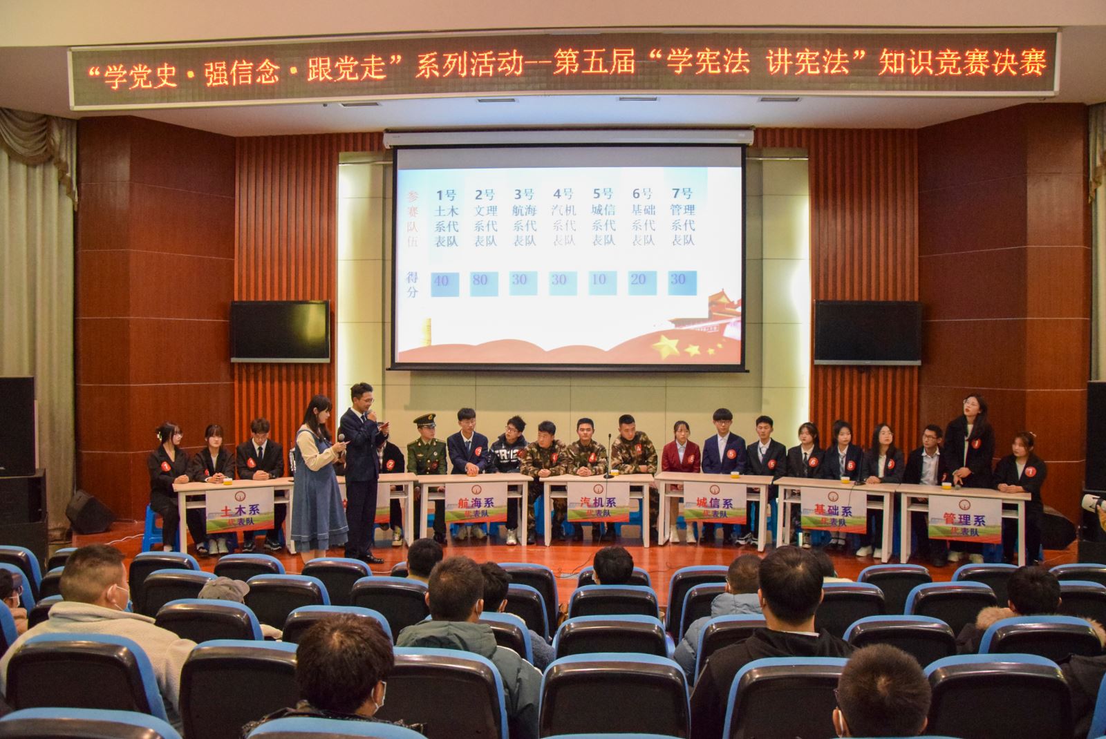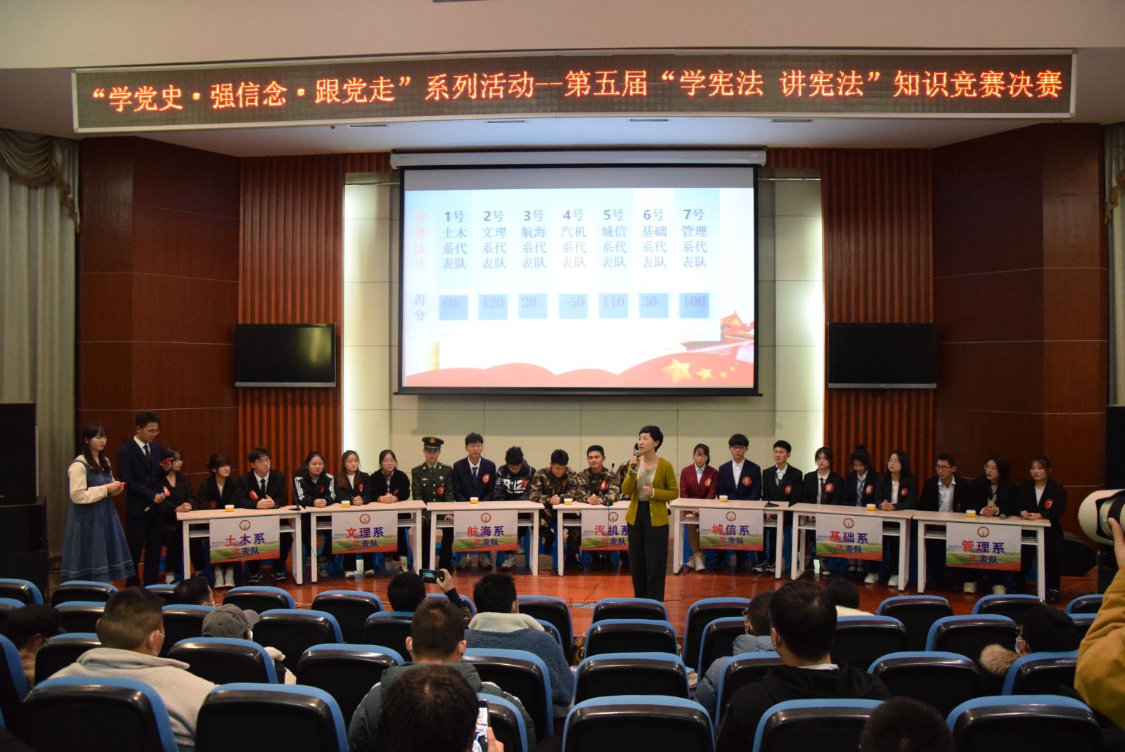 12月16日晚,由學(xué)生處團(tuán)委主辦、院學(xué)生會(huì)學(xué)習(xí)部具體承辦的“學(xué)黨史·強(qiáng)信念·跟黨走”系列活動(dòng)——第五屆“學(xué)憲法·講憲法”知識(shí)競(jìng)賽決賽在北區(qū)八角樓舉行。來(lái)自各系七支代表隊(duì),共計(jì)21名選手參加此次決賽。學(xué)生處處長(zhǎng)喻謹(jǐn),院團(tuán)委負(fù)責(zé)人劉元元,學(xué)生處老師余雪輝、王萌鈺共同觀摩本次決賽。